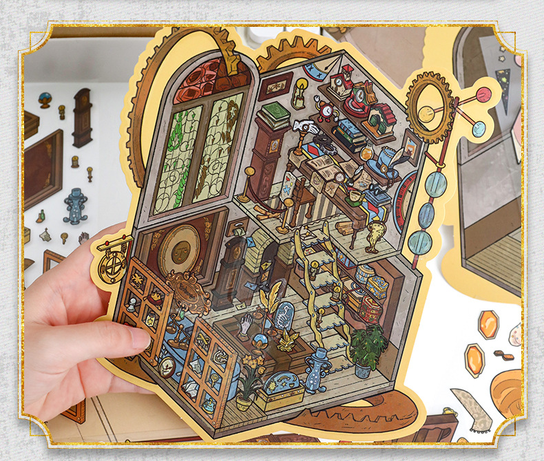 68.0 예술적 파란색 조경 스티커 대형 시간 상점 장면 diy 접합 스티커 크리 에이 티브 감압 핸드북 스티커