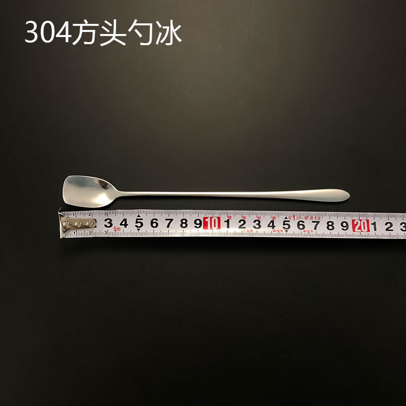 304 스테인레스 스틸 스퀘어 헤드 스푼 롱 핸들 커피 교반 스푼 바 아이스 스푼 바 스푼 홈 허니 디저트 스푼 크로스 보더스토어 가기