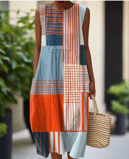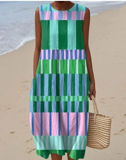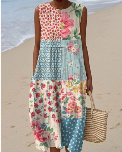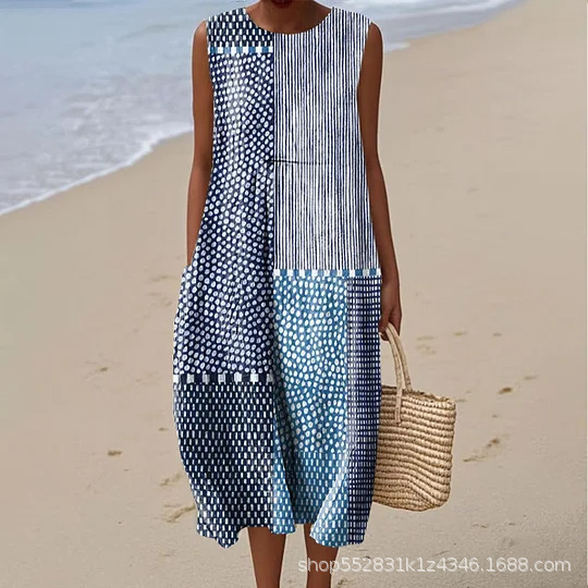 2025 유럽과 미국의 봄 여름 새로운 스타일 민소매 캐주얼 프린트 기질 롱 스커트 드레스 슬림하고 신선한 캐주얼 스커트스토어 가기