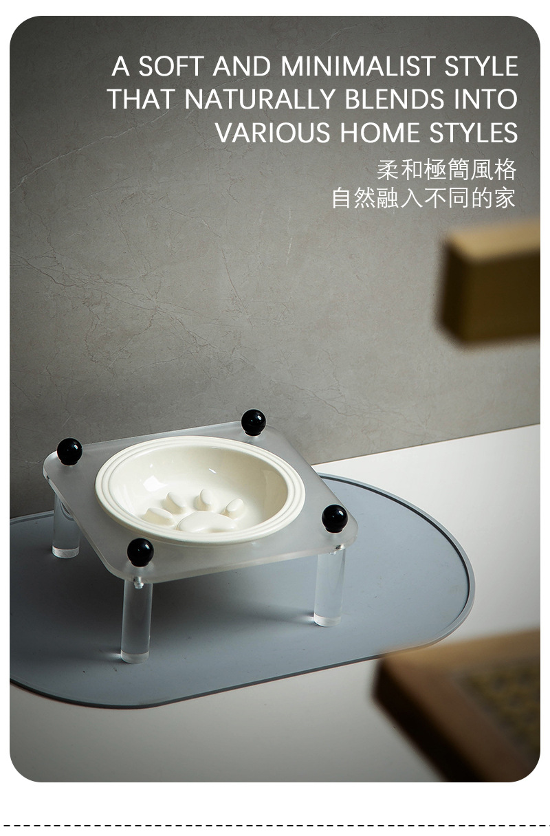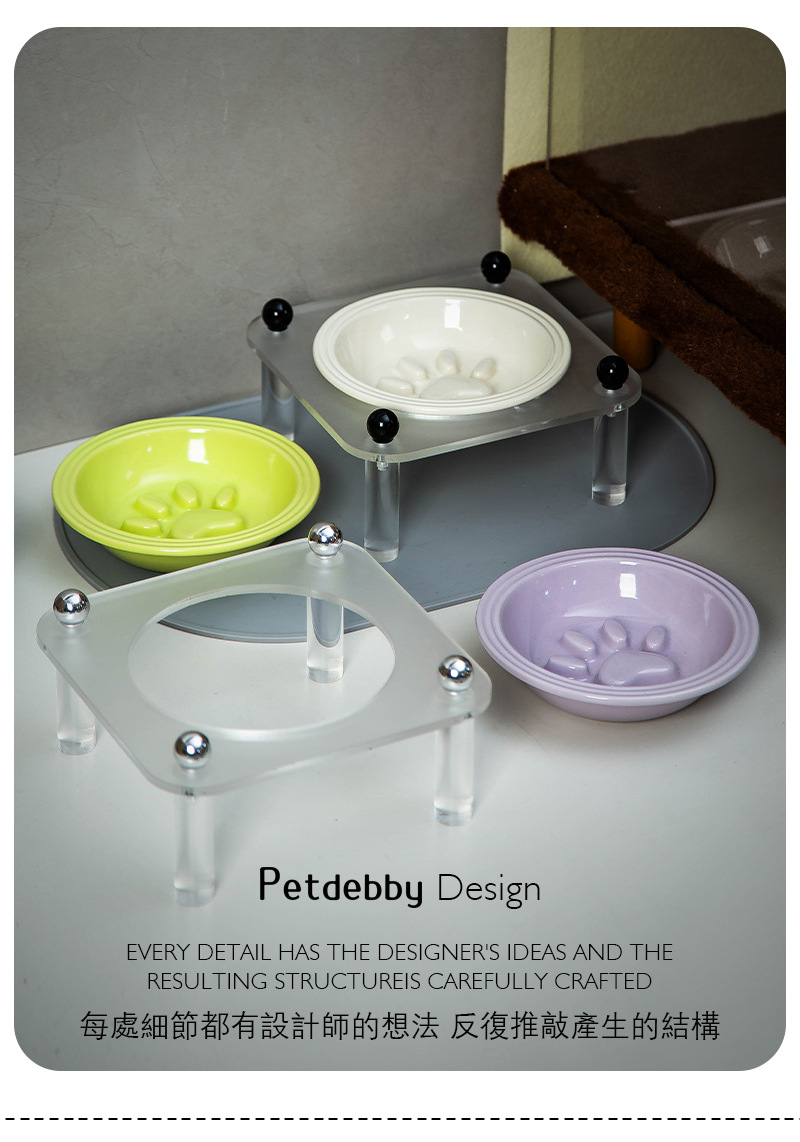 • 미색 가장자리 보호 고양이 발톱 슬로우 푸드 그릇 + 사각형 아크릴 스탠드