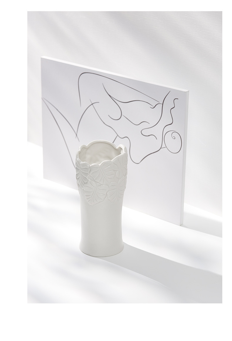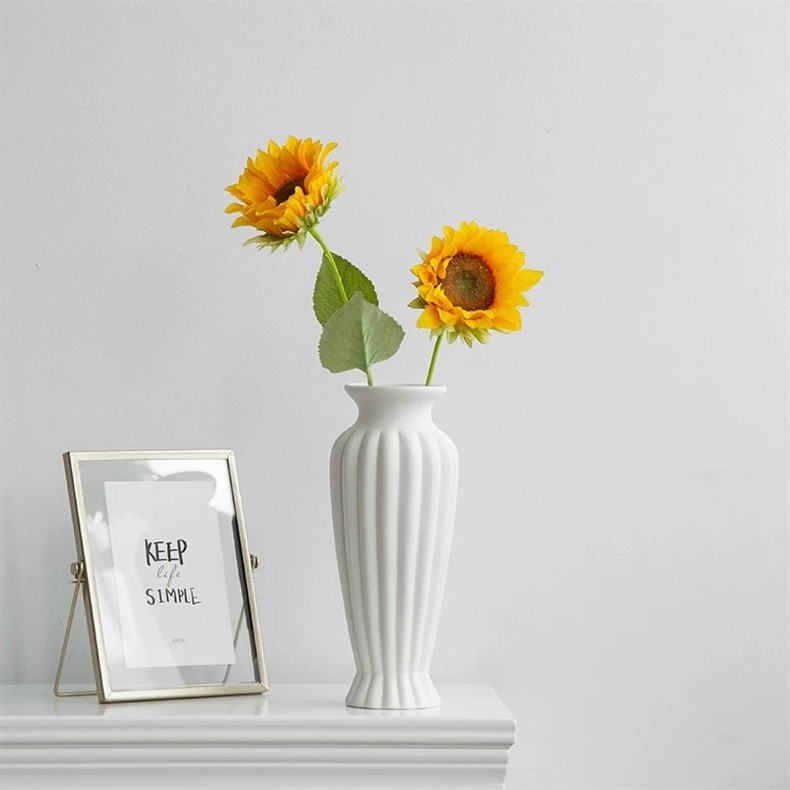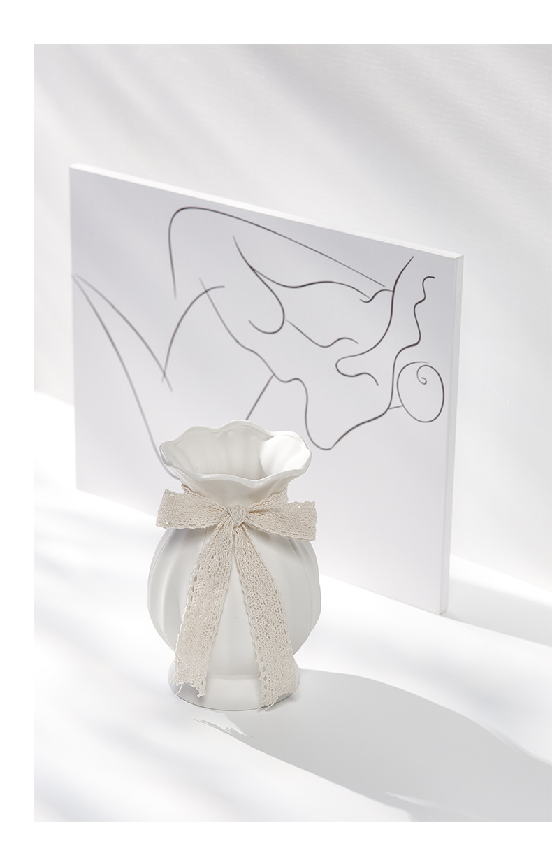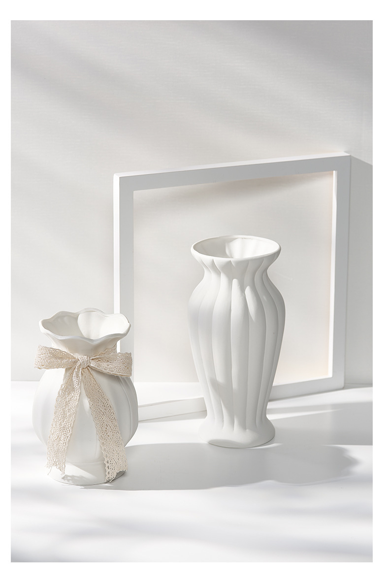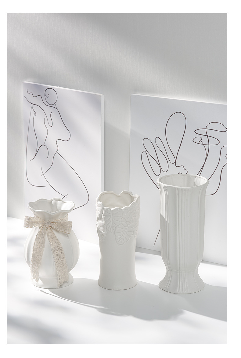 흰색 북유럽 세라믹 말린 꽃병 물 장식 홈 장식 장식품 거실 꽃꽂이 큰 입 현대 간단한 장식