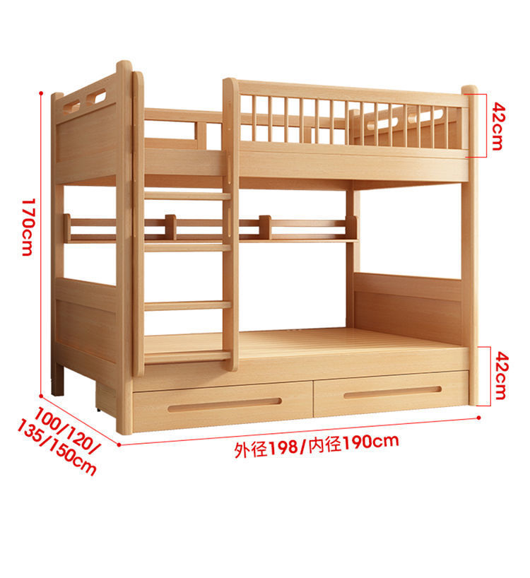 너도밤나무 기숙사 이층침대, 폭이 같은 이층침대, 원목 이층침대, 어린이 이층침대, 높낮이 이층침대
