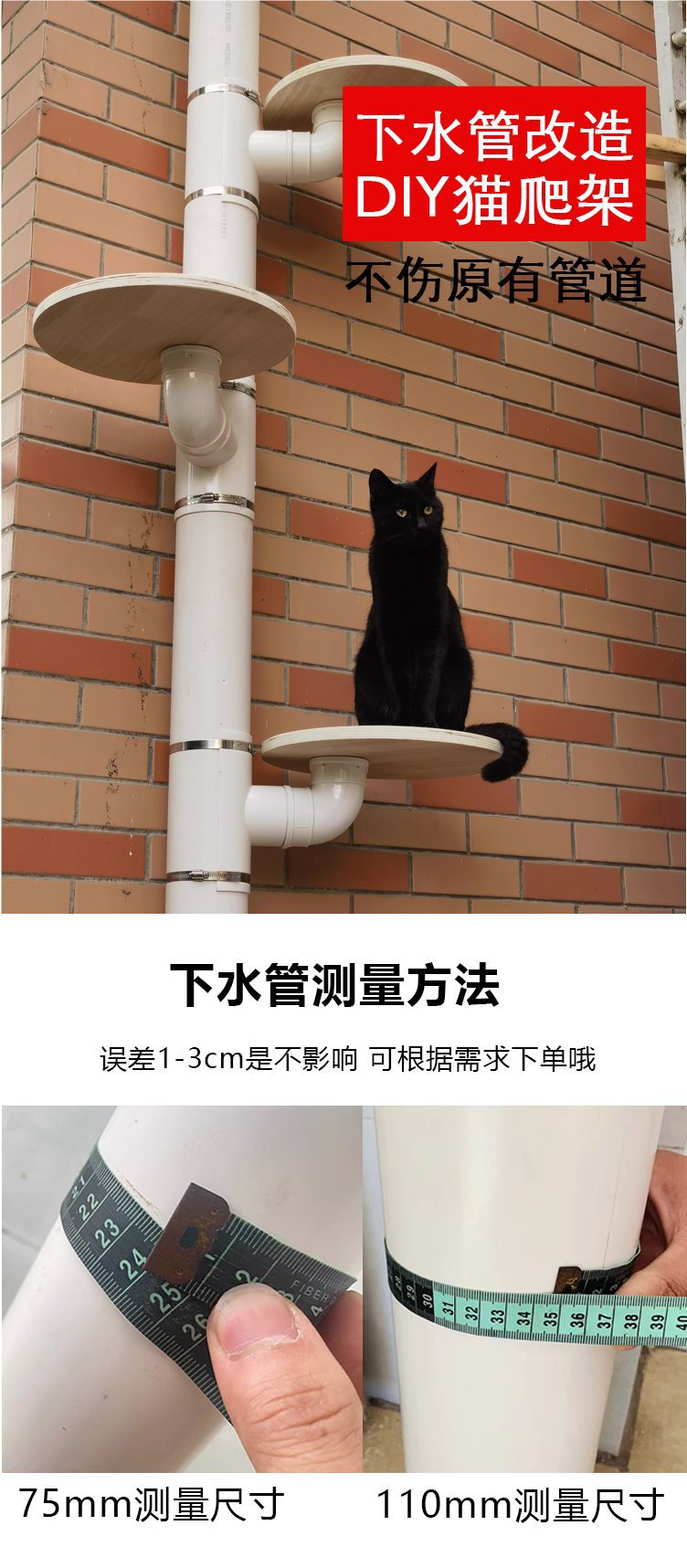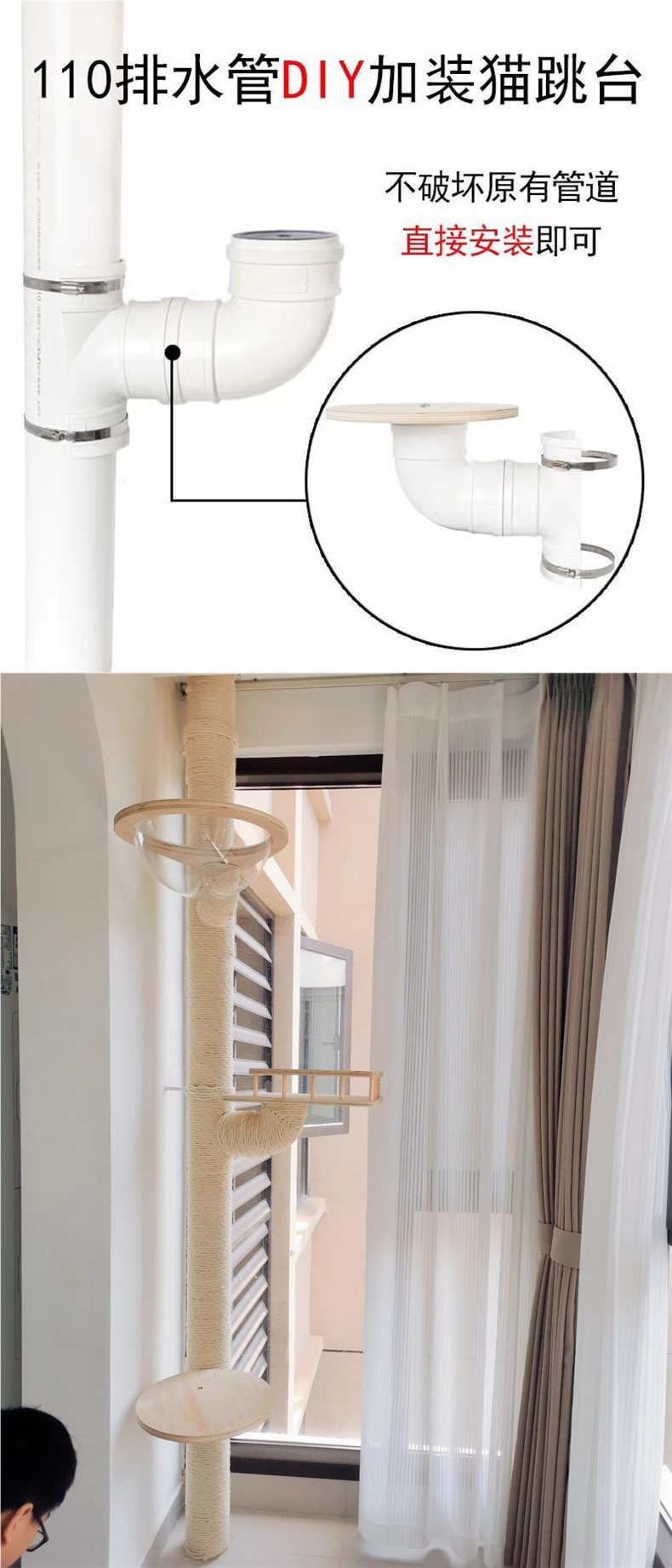 발코니 하수관 개조 고양이 클라이밍 프레임 DIY 수제 천둥 액세서리 원목 점프 플랫폼 캣트리 빌라 기본 항목스토어 가기