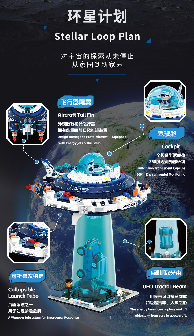Weiji 빌딩 블록 링 스타 프로젝트 UFO 모델 506510 조립 교육 유행 장난감 장식품 소년과 소녀 선물스토어 가기
