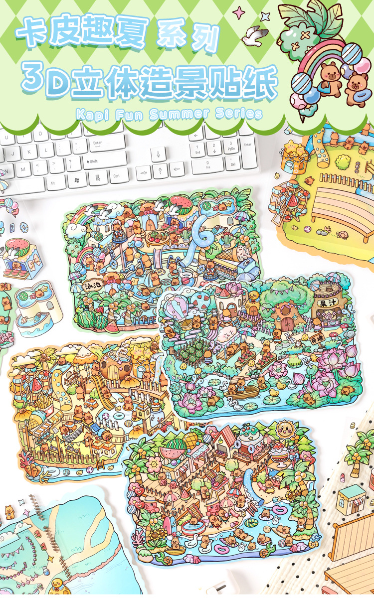 Kapiquxia 만화 미니어처 3차원 장면 스티커 어린이 3D 조경 스티커 도매를 위한 국경 간 특별 공급
