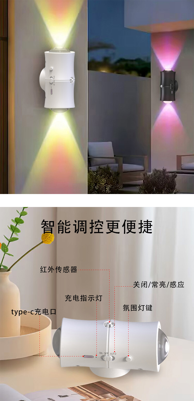 국경을 넘는 다채로운 그라데이션 분위기 야간 조명 지능형 인체 유도 자기 충전식 다채로운 벽 조명 홈 조명