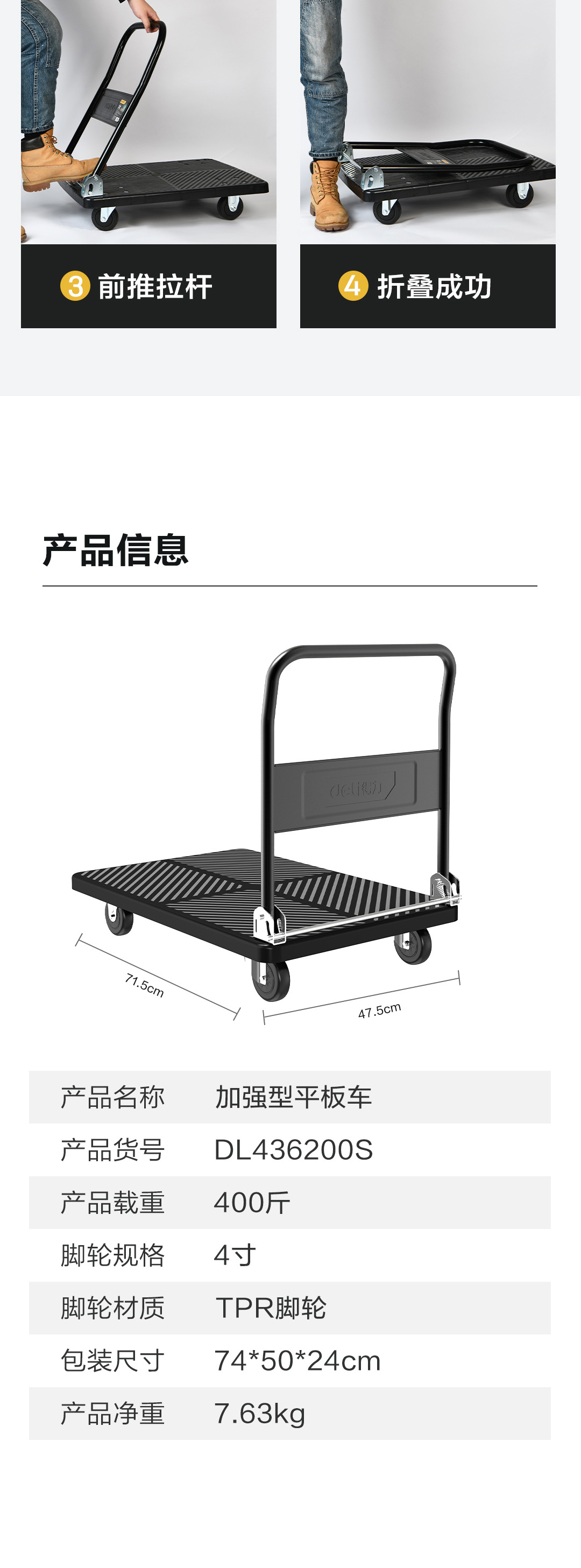 델리 DL436200S 강화 플랫 트럭 200kg/TPR 휠스토어 가기