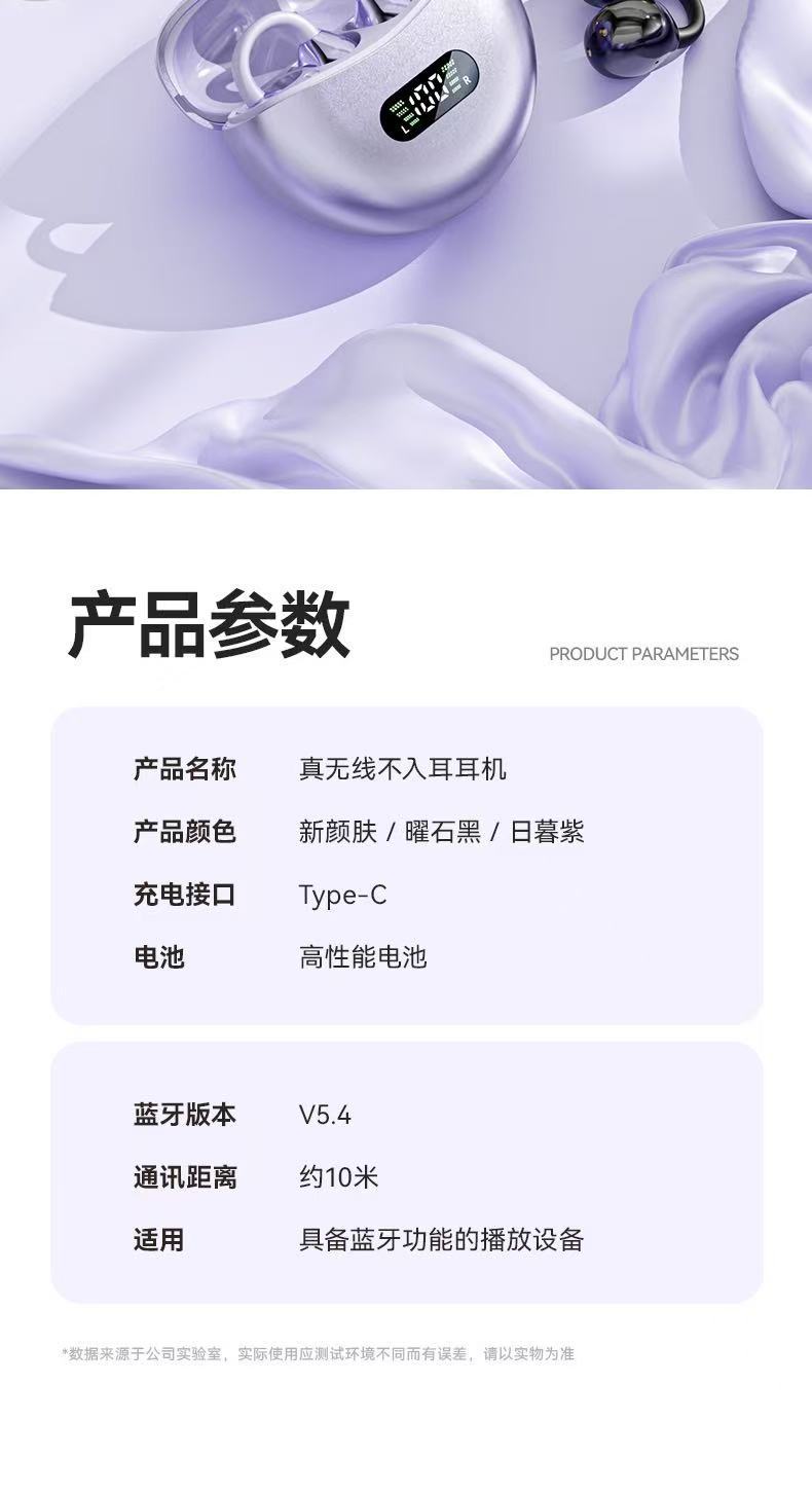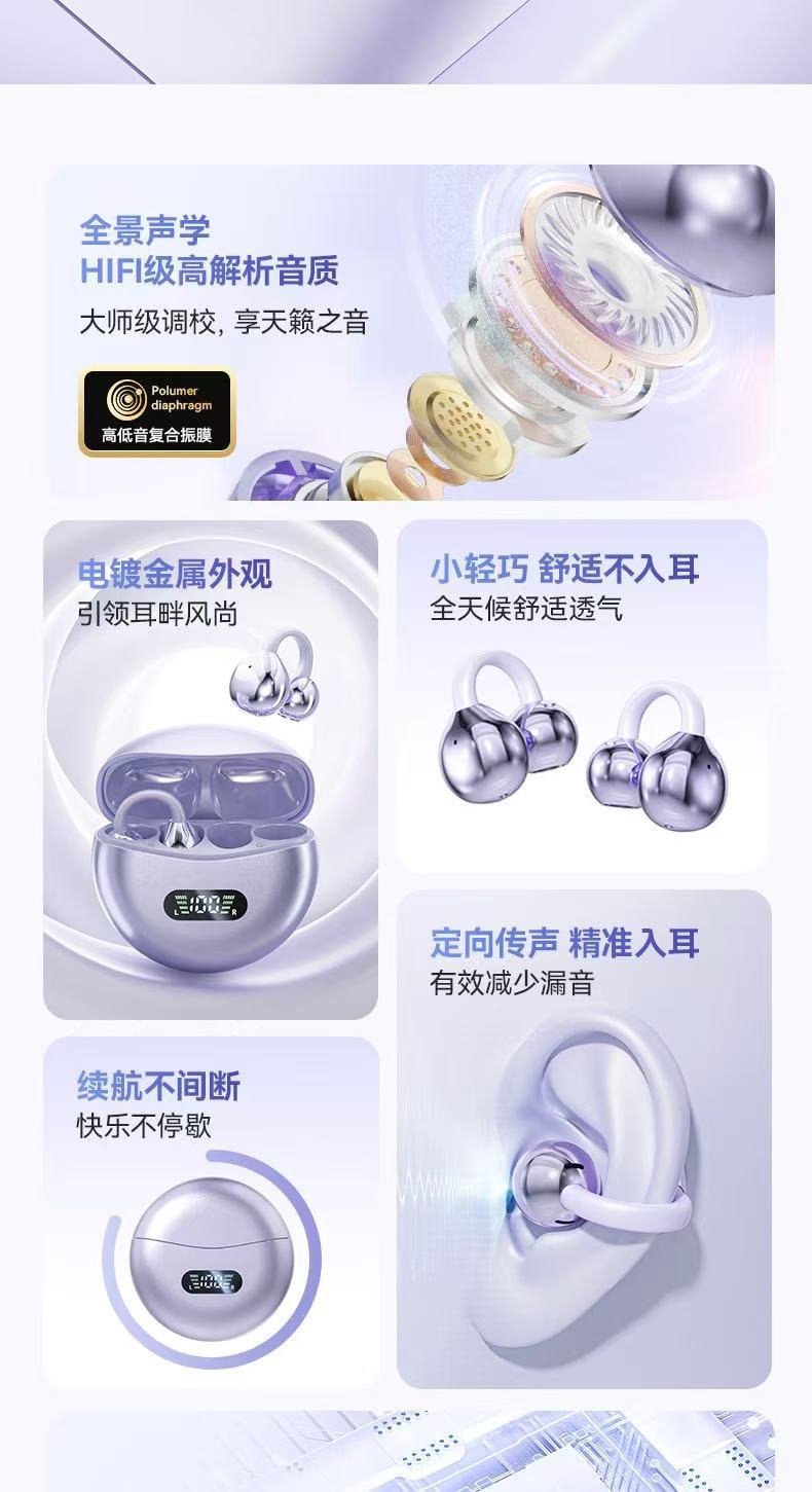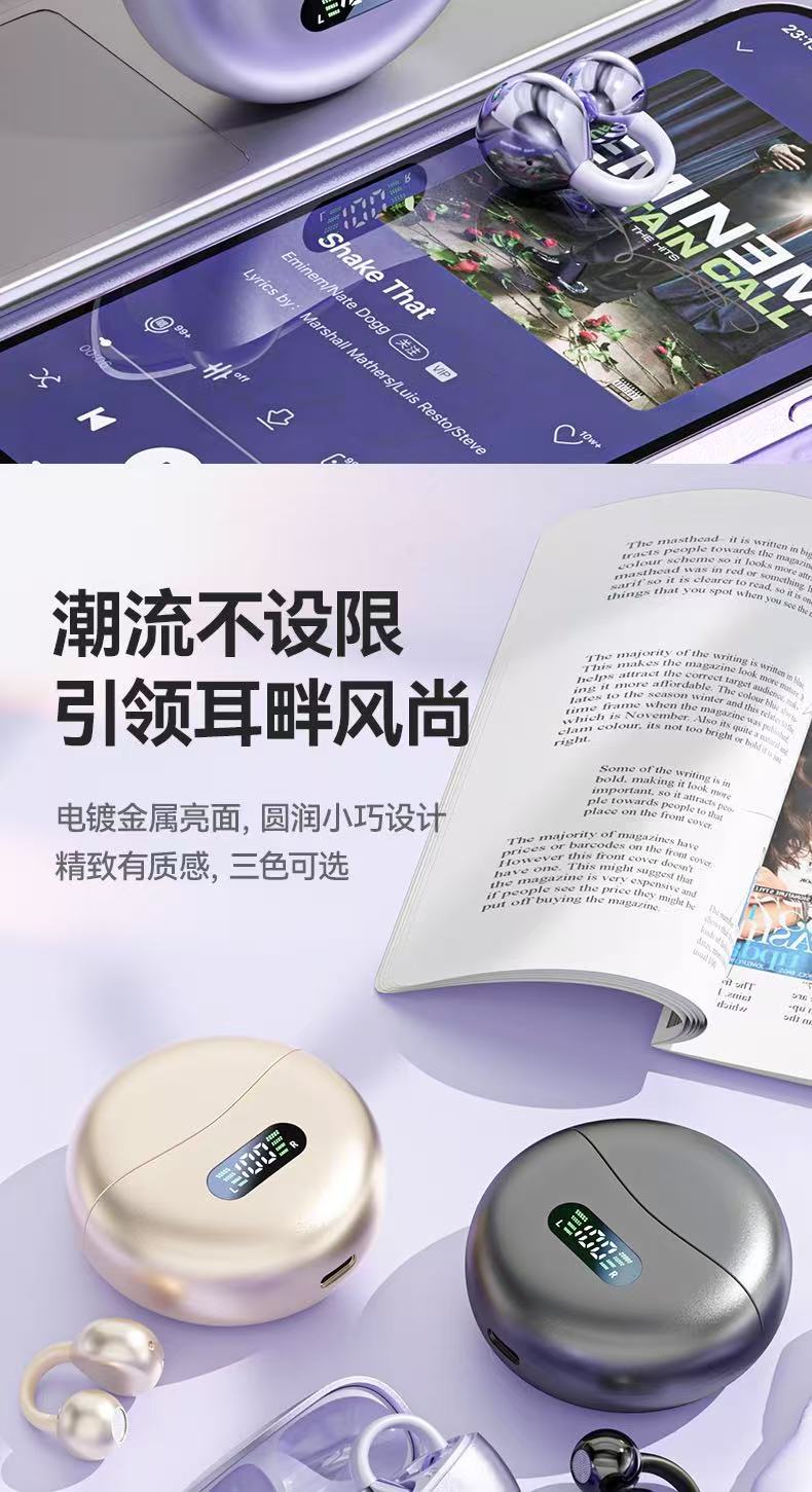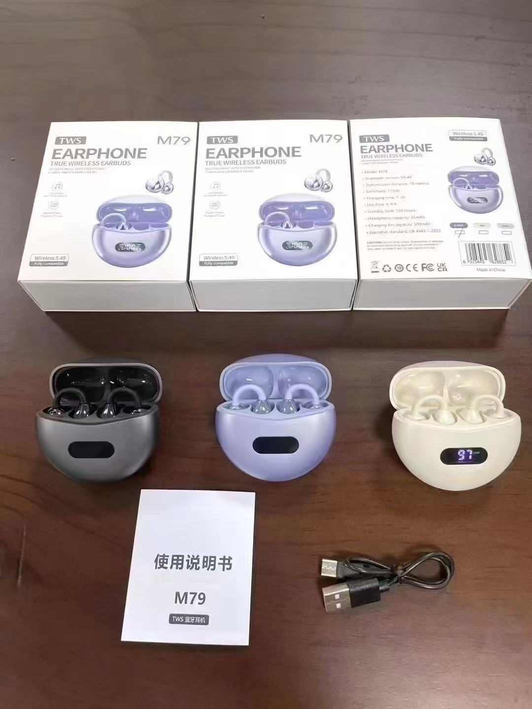 2025 새로운 M79 이어 클립 무선 블루투스 헤드셋 스포츠 러닝 오픈형 골전도 퍼플 블랙 스킨 컬러