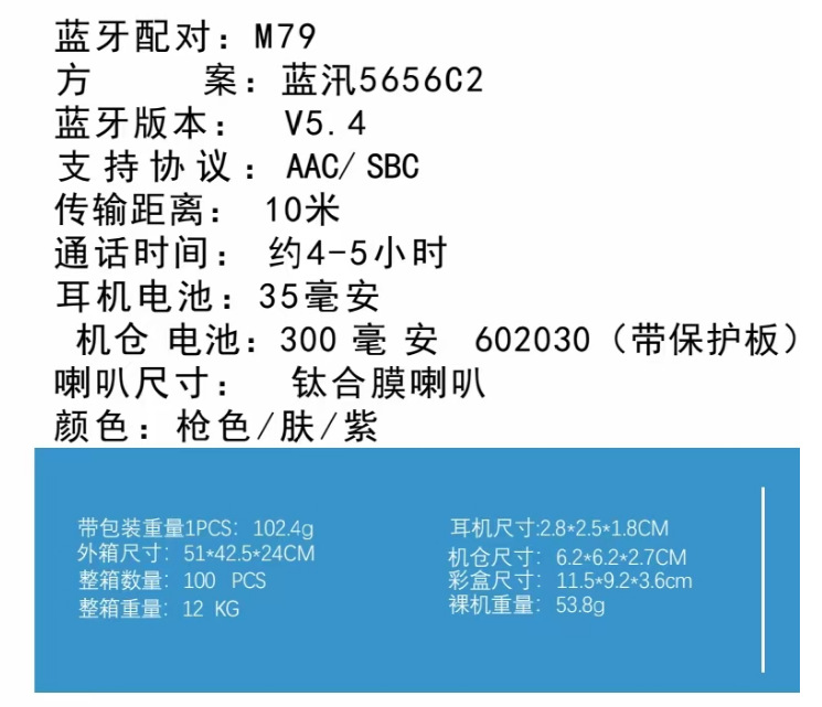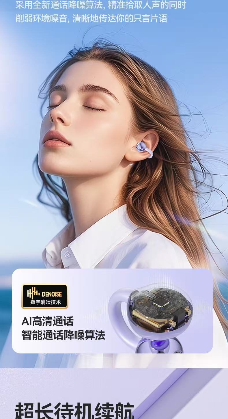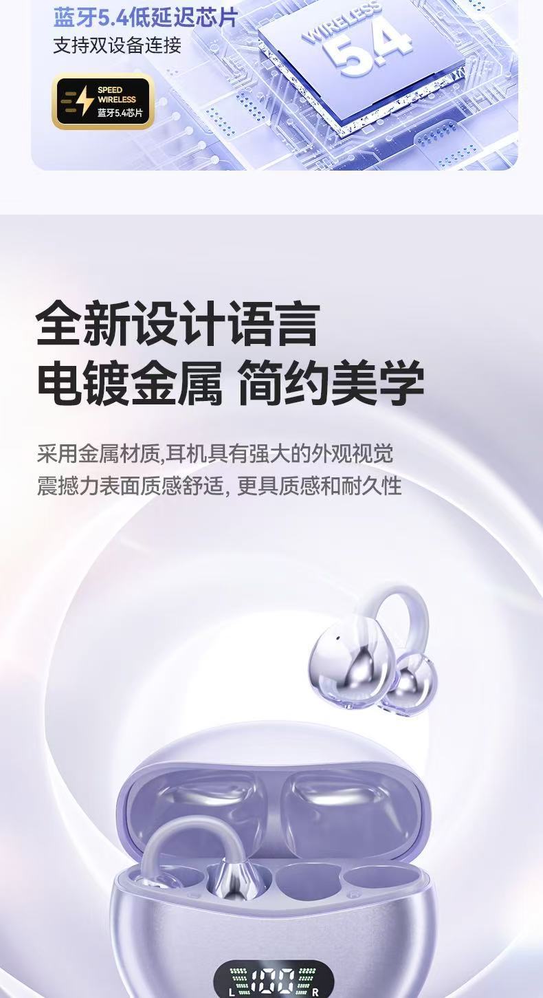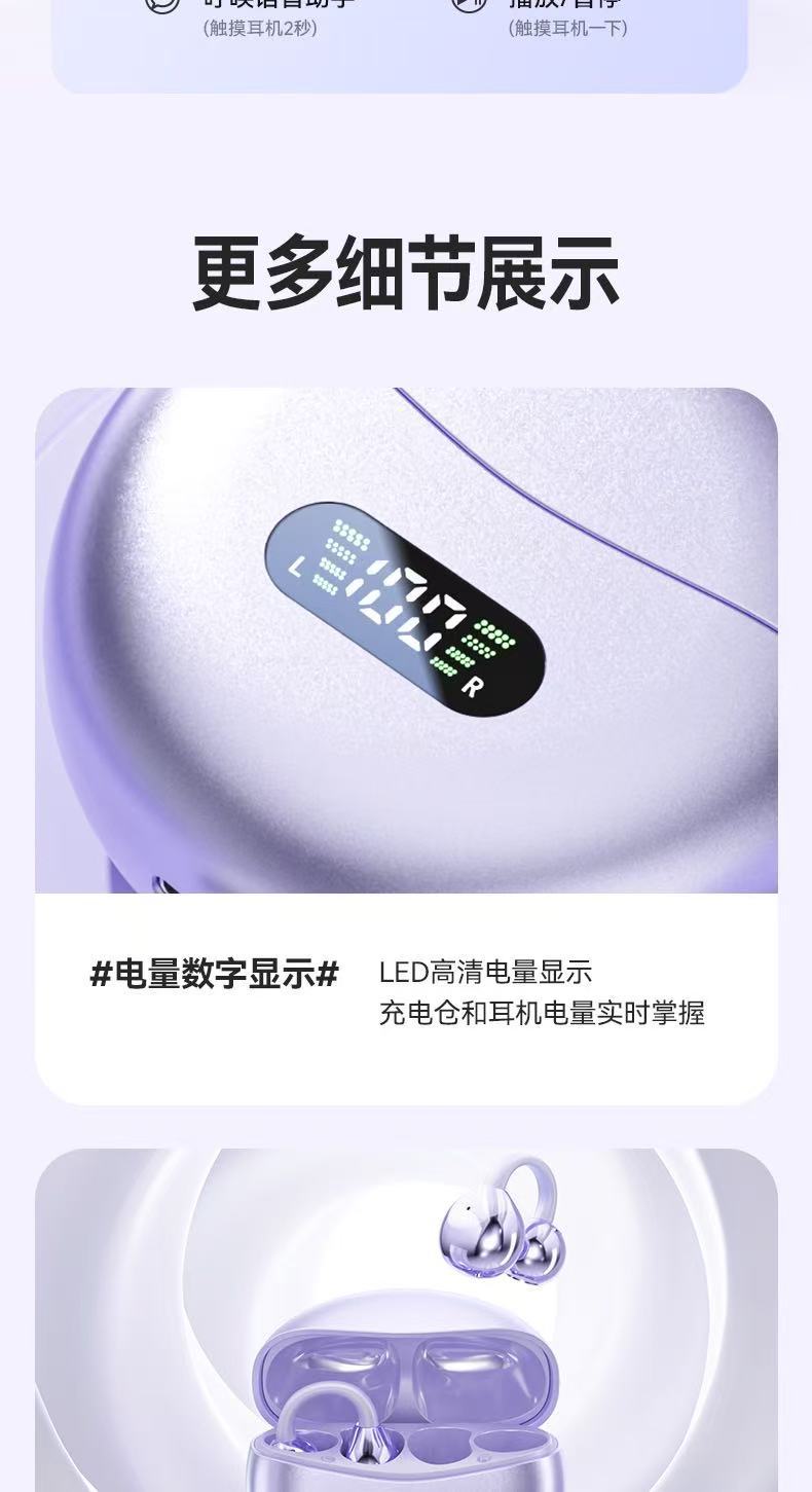 2025 새로운 M79 이어 클립 무선 블루투스 헤드셋 스포츠 러닝 오픈형 골전도 퍼플 블랙 스킨 컬러
