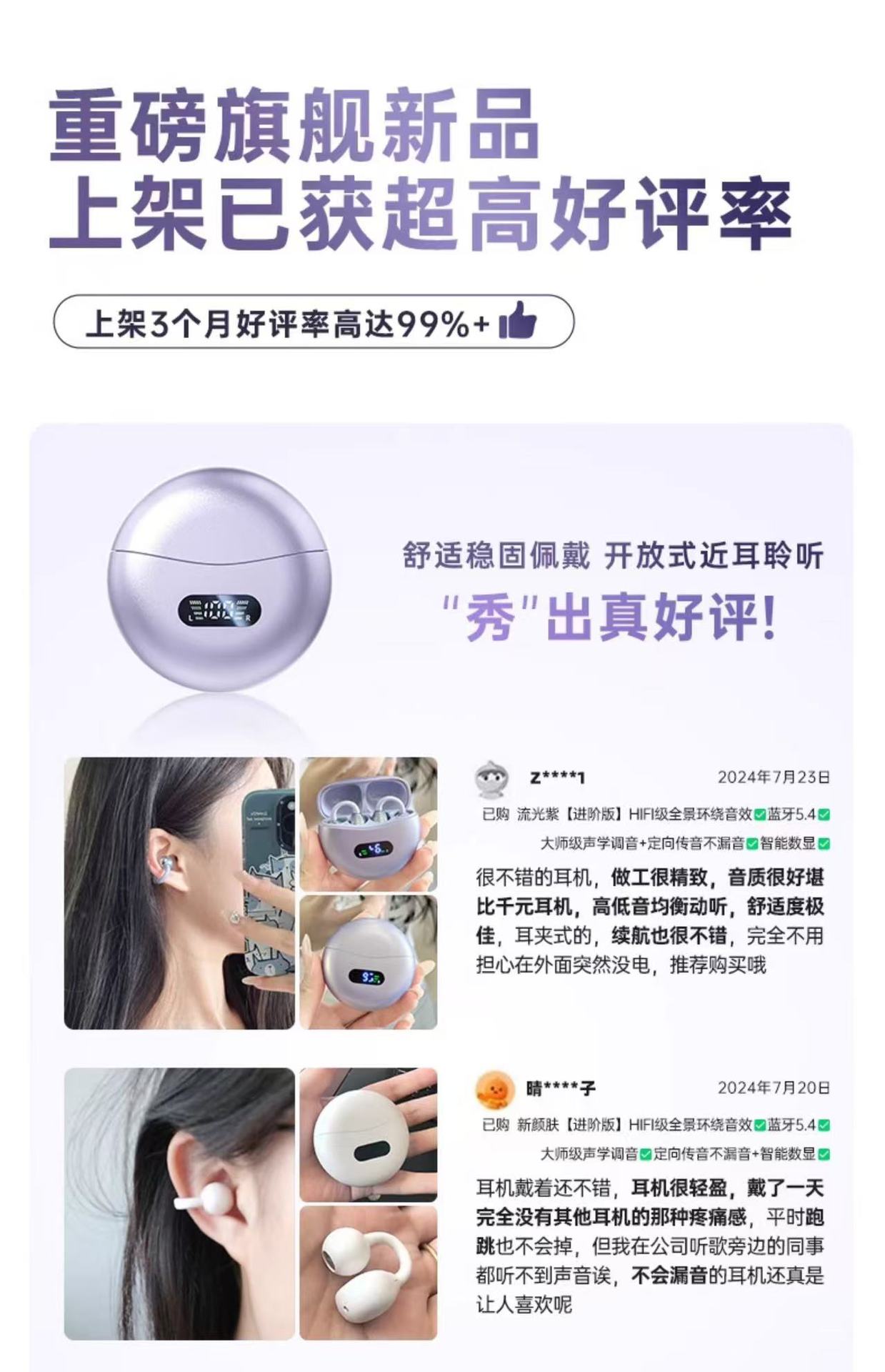 2025 새로운 M79 이어 클립 무선 블루투스 헤드셋 스포츠 러닝 오픈형 골전도 퍼플 블랙 스킨 컬러스토어 가기