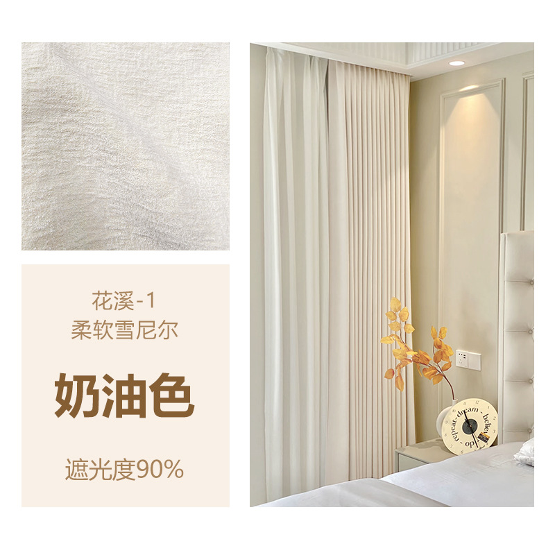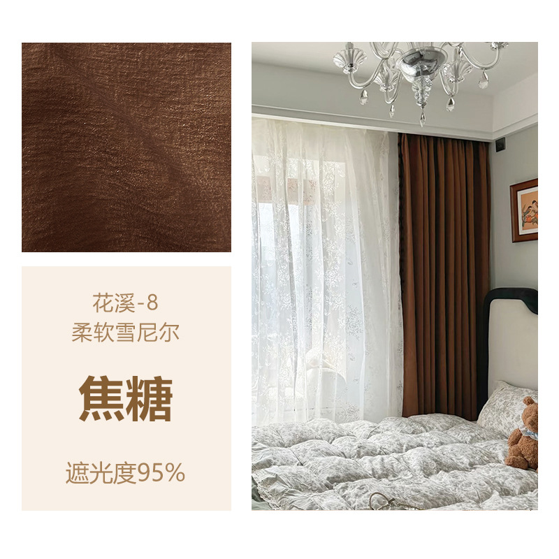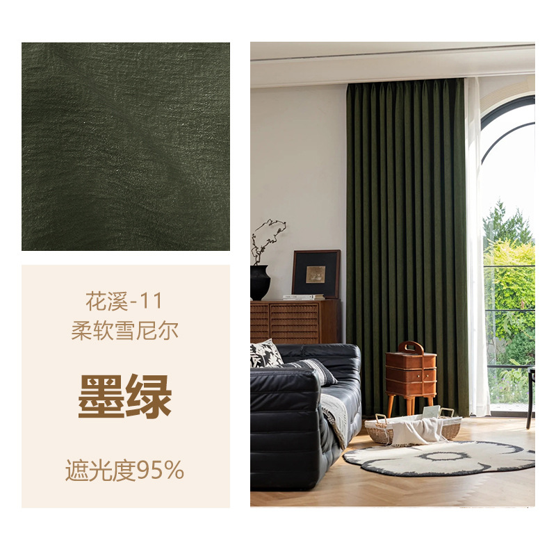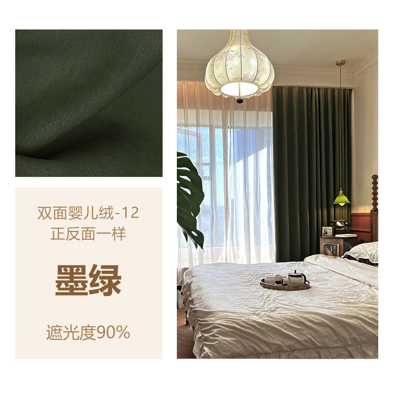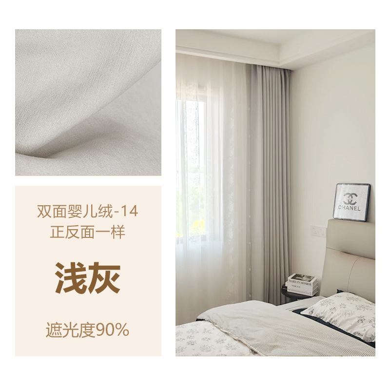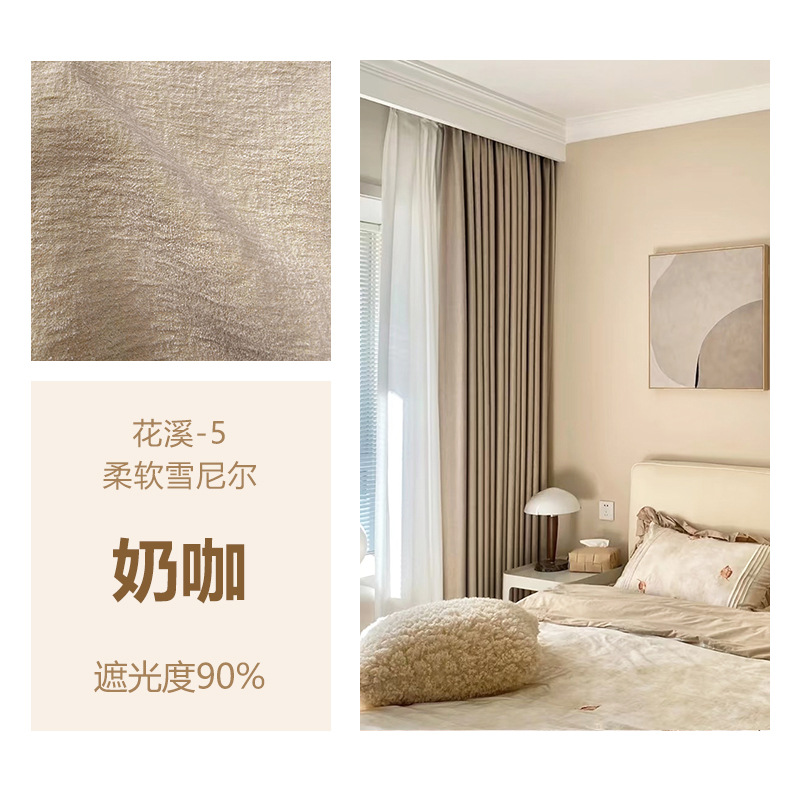 Huaxi/양면 베이비 벨벳 현대적인 단순하고 우아한 단색 질감 어두운 패턴 셔닐 두꺼운 빛 차단 커튼스토어 가기