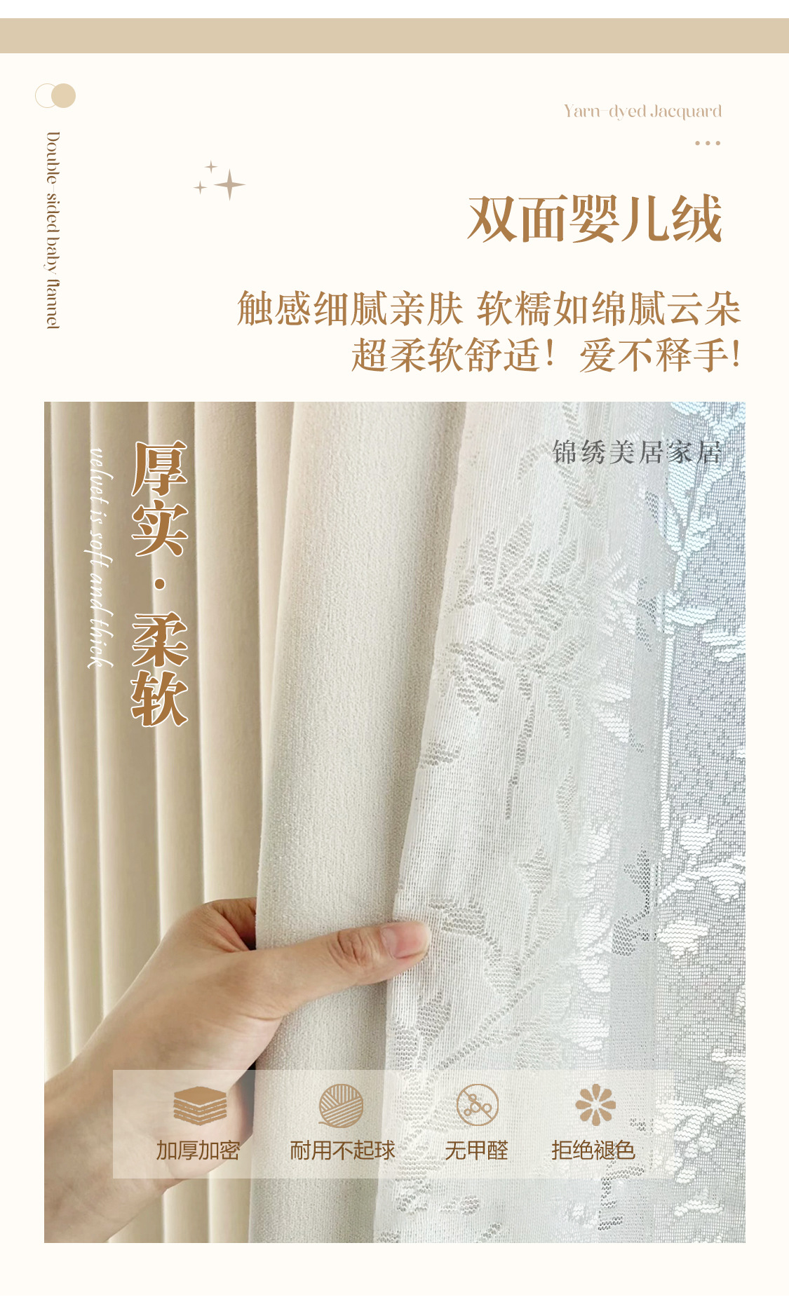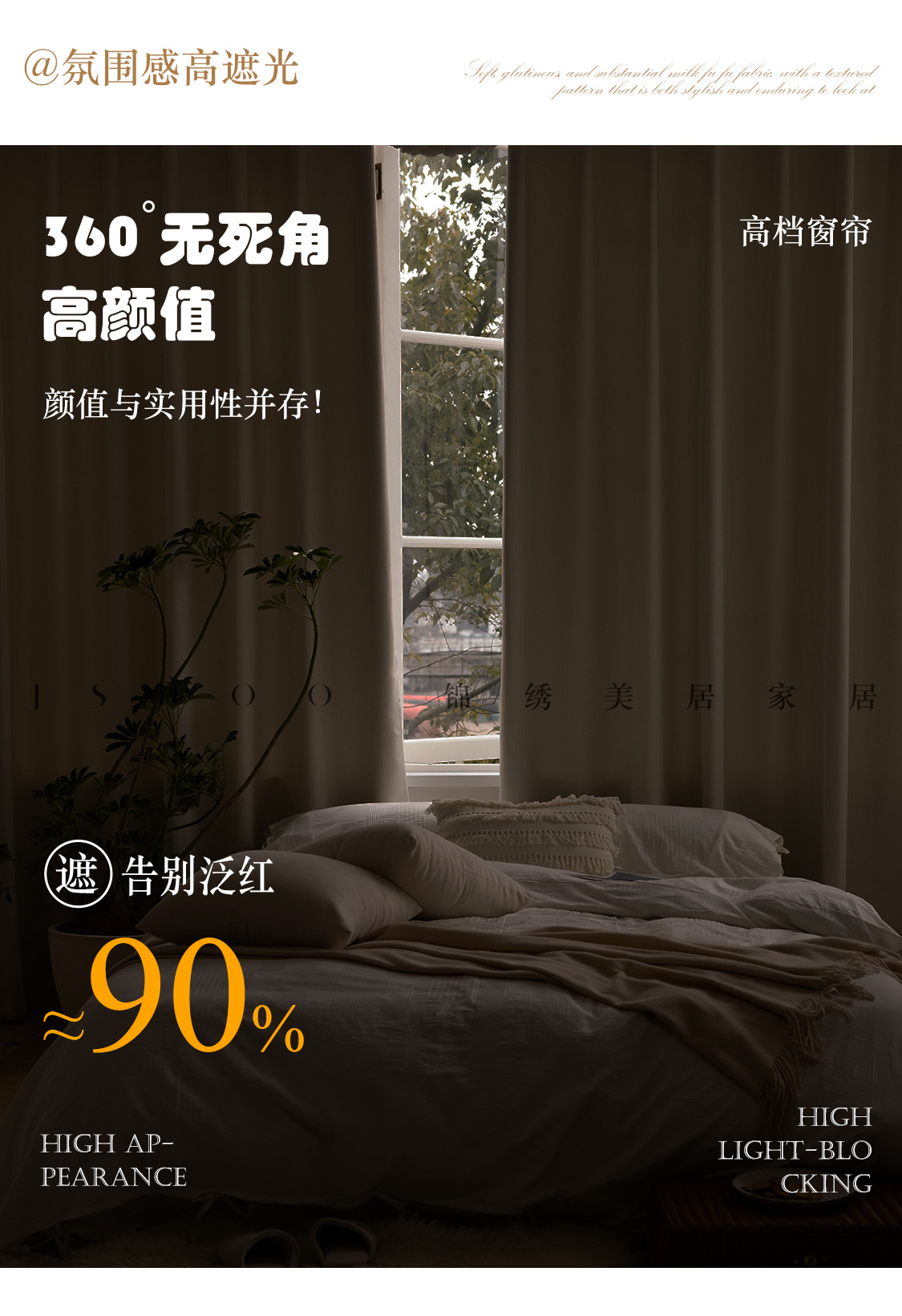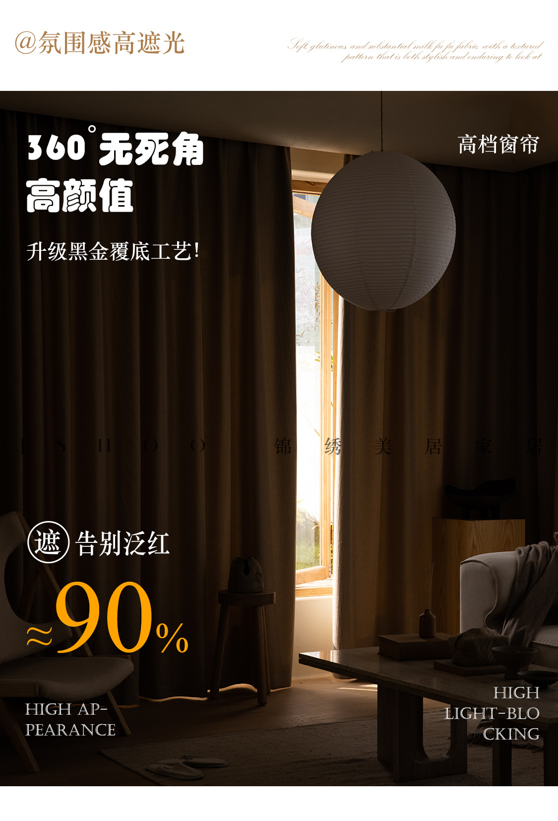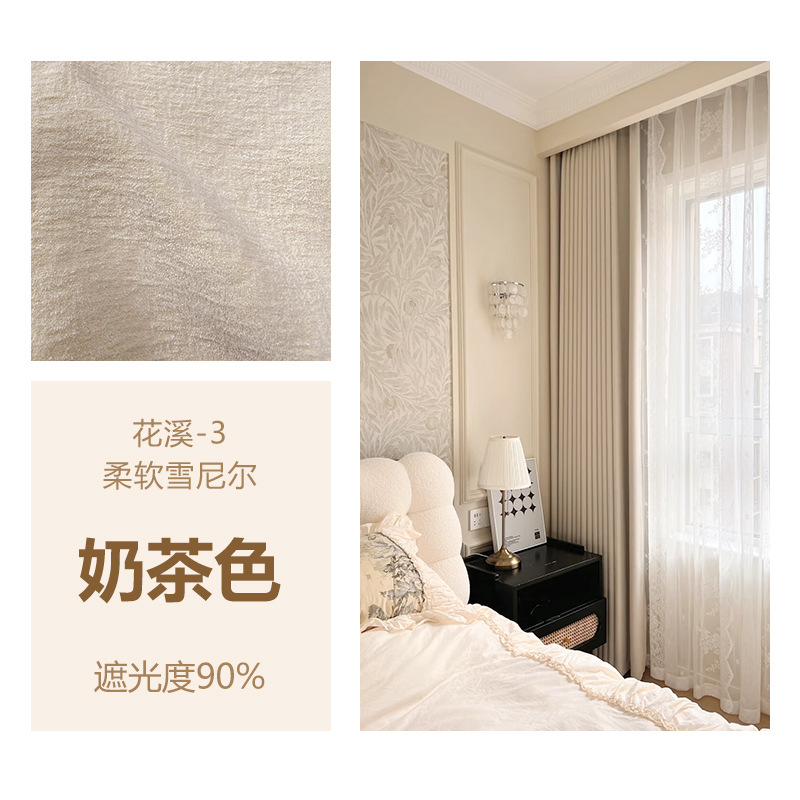 Huaxi/양면 베이비 벨벳 현대적인 단순하고 우아한 단색 질감 어두운 패턴 셔닐 두꺼운 빛 차단 커튼스토어 가기