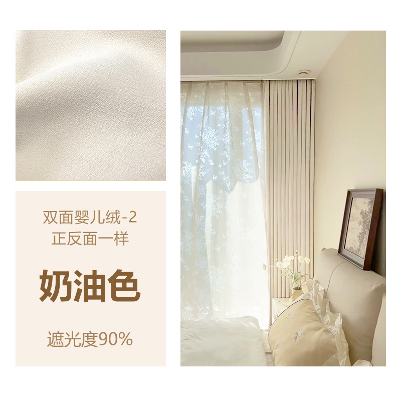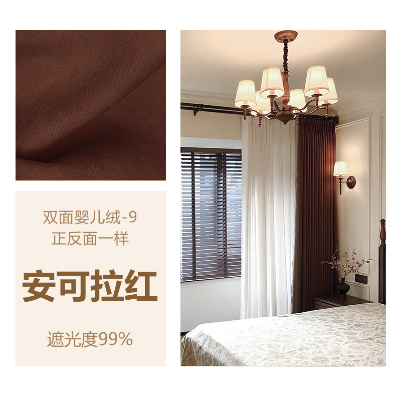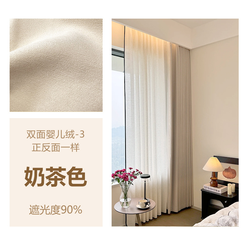 Huaxi/양면 베이비 벨벳 현대적인 단순하고 우아한 단색 질감 어두운 패턴 셔닐 두꺼운 빛 차단 커튼