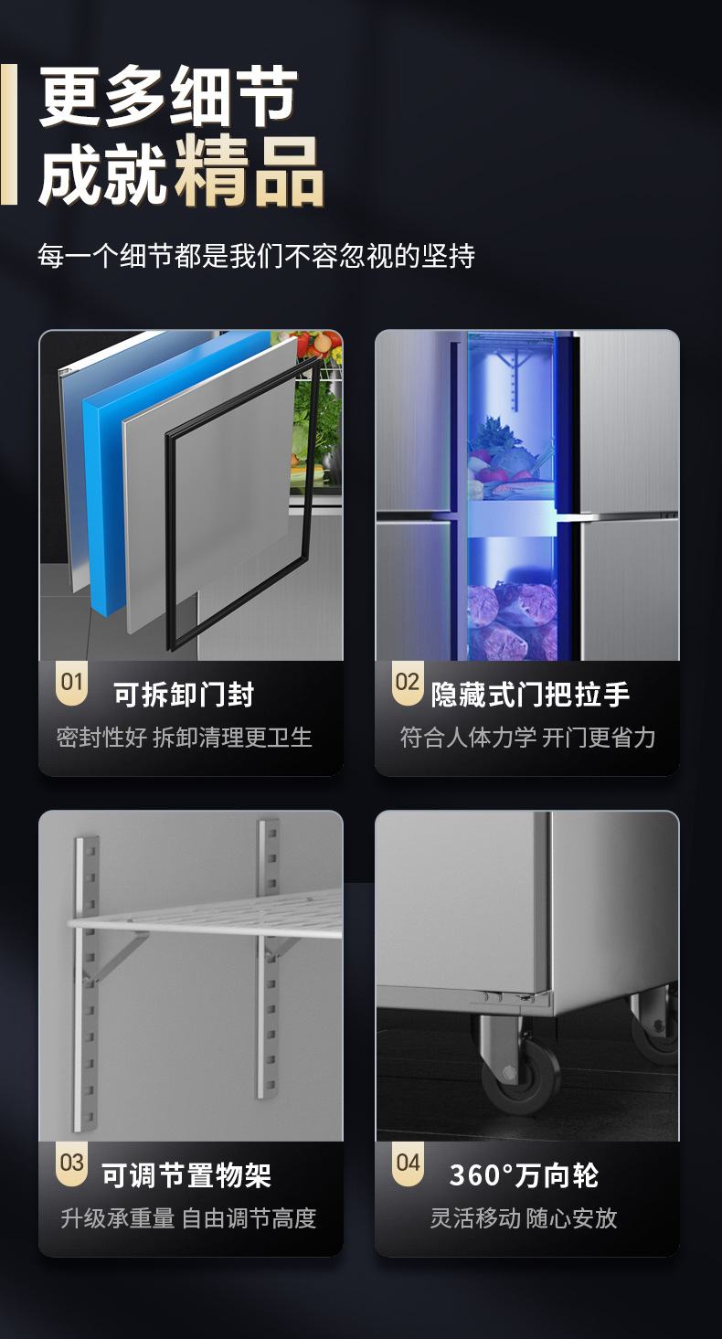 구리관 냉장 4도어 냉장고 상업용 케이터링 주방 냉장고 상업용 4도어 냉동고 상업용 냉동고 대용량
