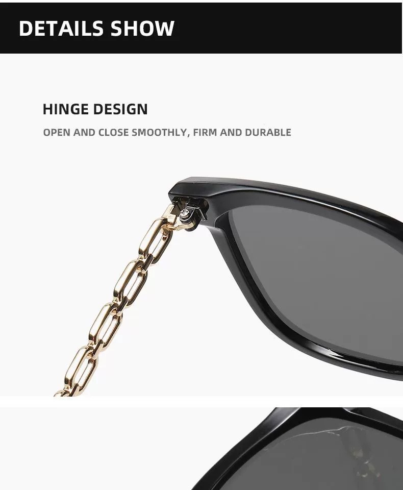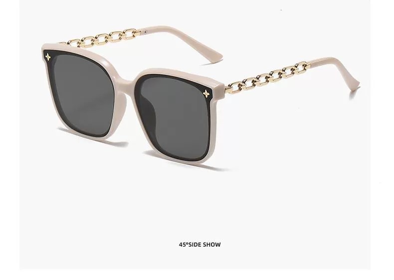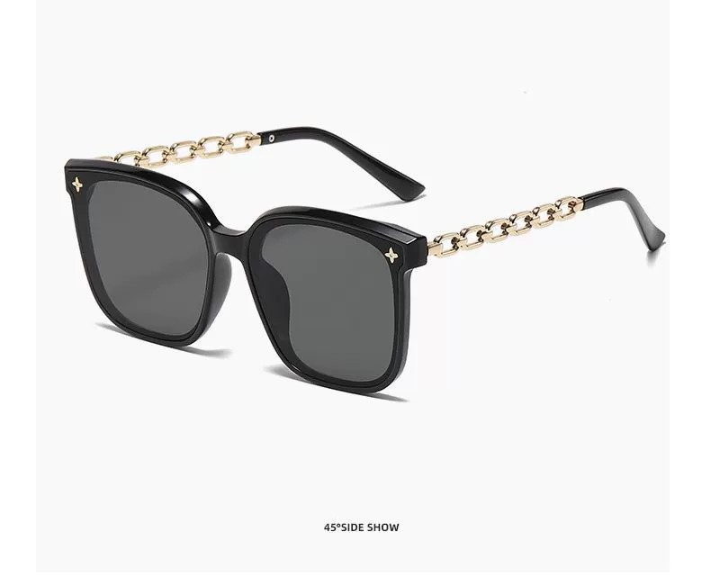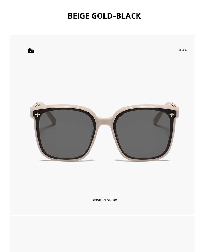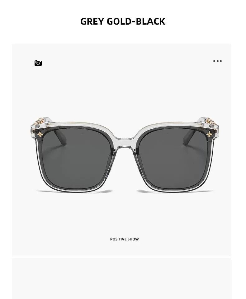 새로운 패셔너블한 사각형 프레임 선글라스, 체인 선글라스, 여성 인터넷 연예인 핫 스타일, 큰 프레임, 작은 얼굴, 고급 안경, 자외선 차단