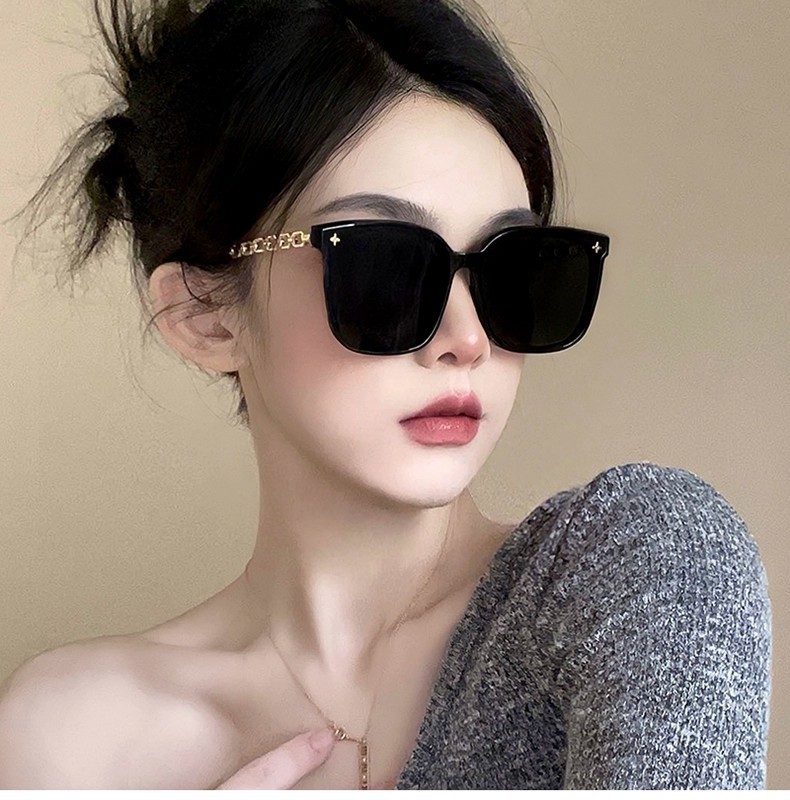 새로운 패셔너블한 사각형 프레임 선글라스, 체인 선글라스, 여성 인터넷 연예인 핫 스타일, 큰 프레임, 작은 얼굴, 고급 안경, 자외선 차단스토어 가기
