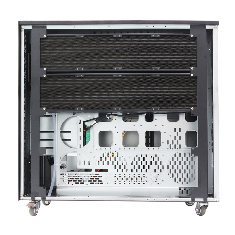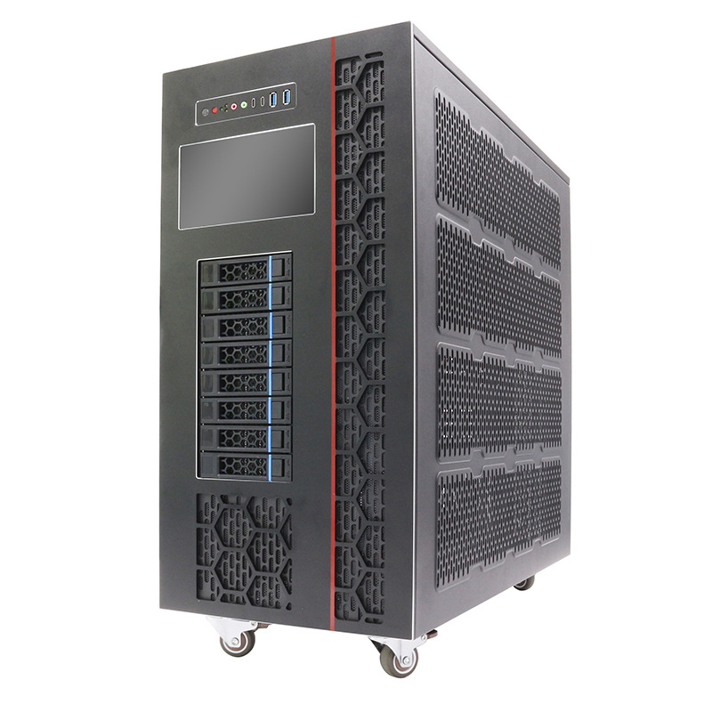 拓普龙塔式机箱尺寸为L633*W280*H570MM,硬盘背板:一组 8盘位3.5寸硬盘背板,支持4个480冷排位,采用分水器方式,在计算性能、拓展能力、温度控制、稳定性等方面都显示出超凡的实力,能最大程度满足人工智能等新兴领域的开发与应用,适用于HPC、大数据分析、3D 图形应用、视频解码、深度学习、科学计算等应用场景。