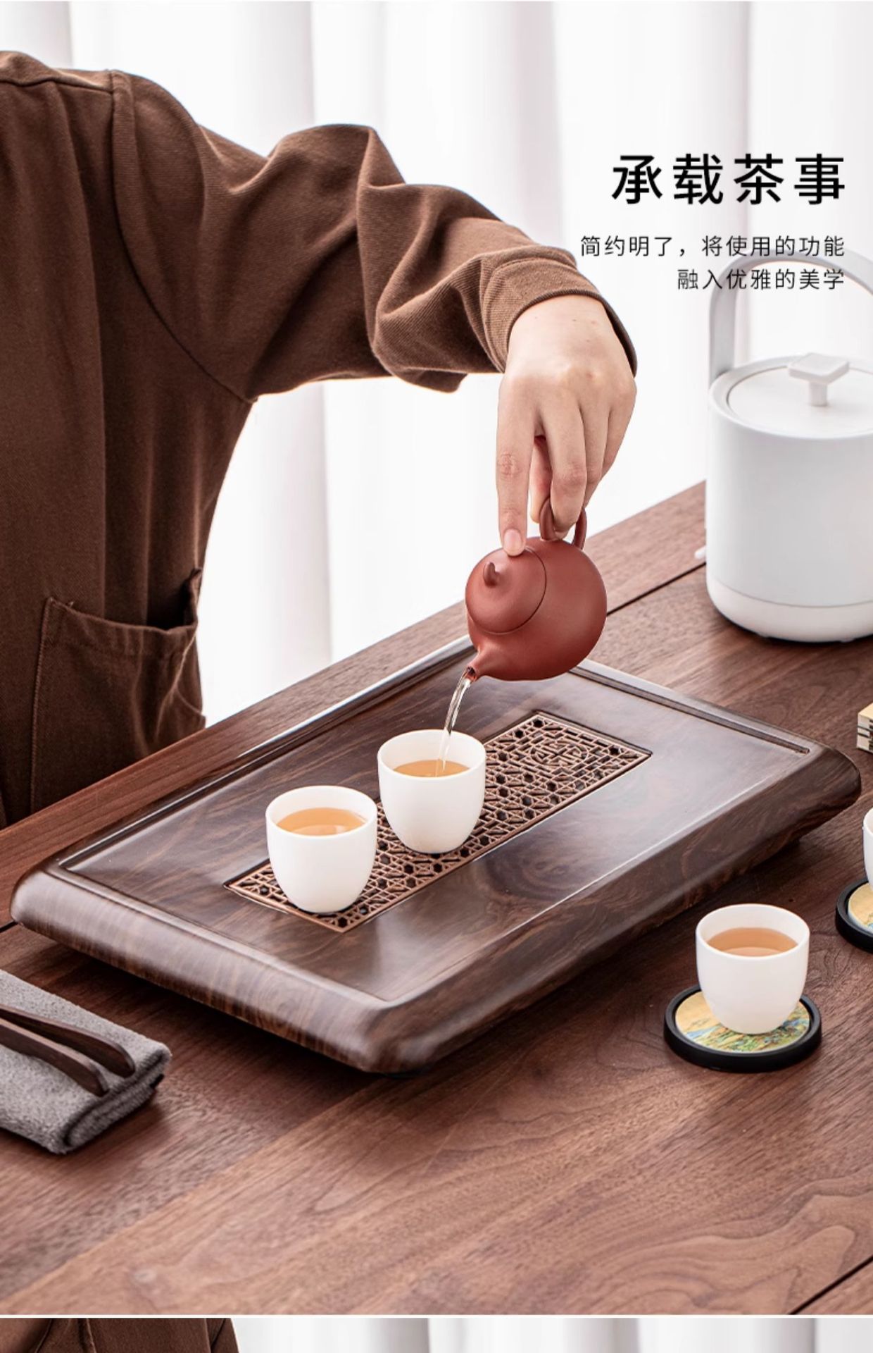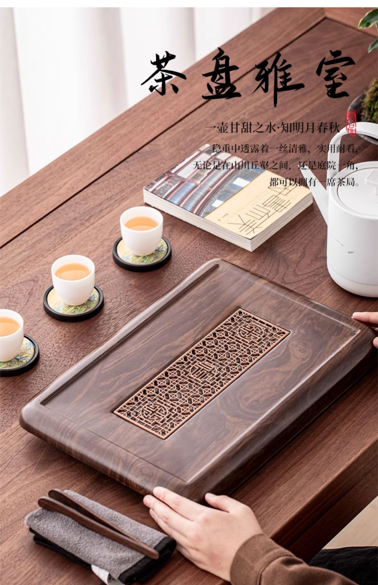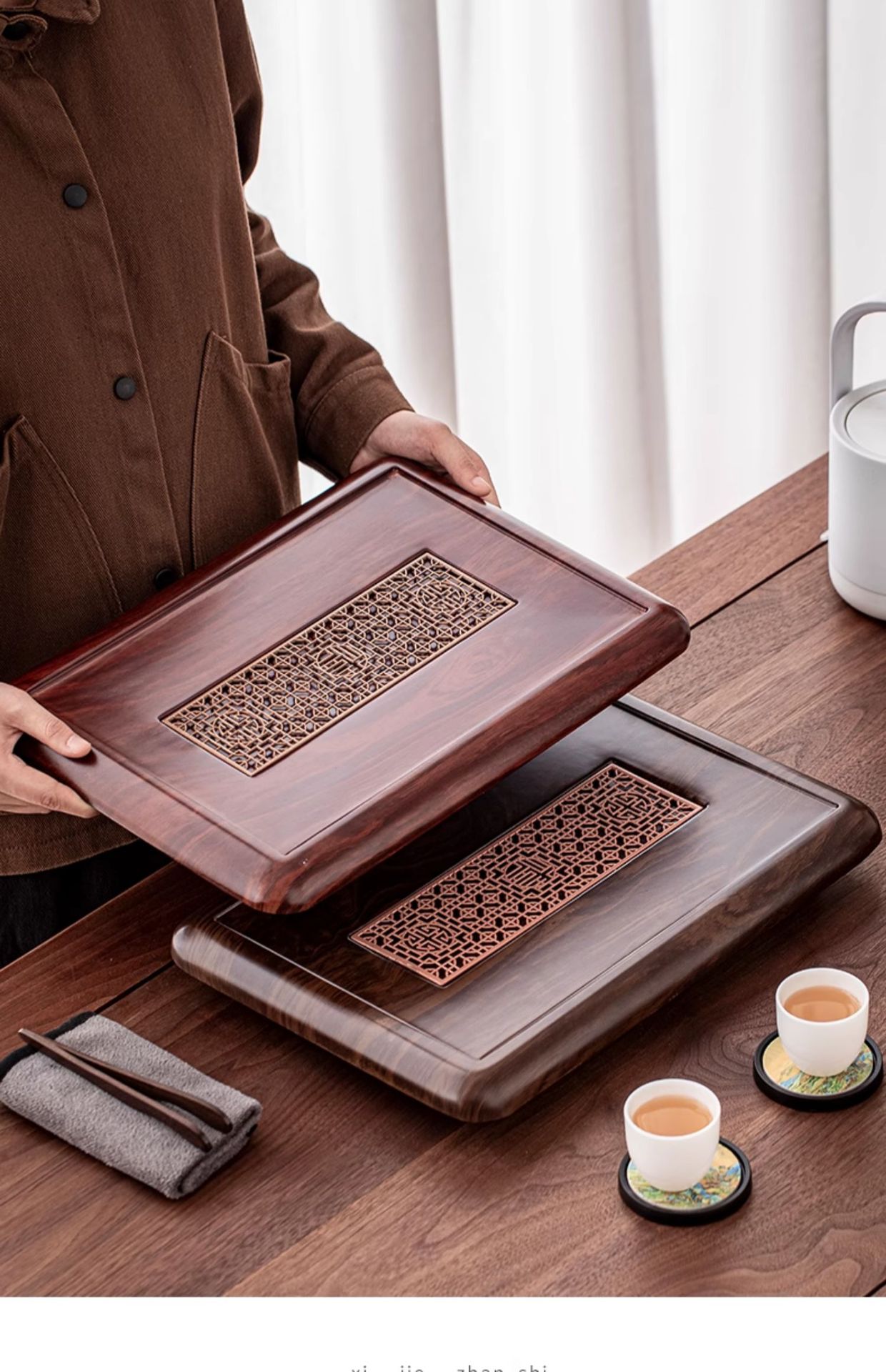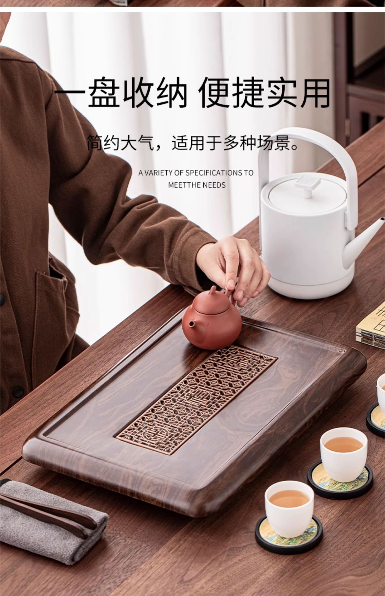 호두색 티 트레이, 가정용 티 트레이, 천연 원목 티 테이블, 소형 모델, 차 바다 쿵푸 차 세트, 간단한 트레이
