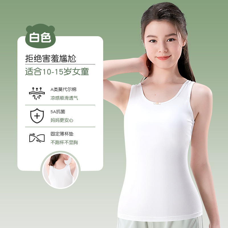 여아 속옷, 여아용 긴 모달 면 조끼, 초등학생, 중학생, 여아용 하의 셔츠, 돌출 방지