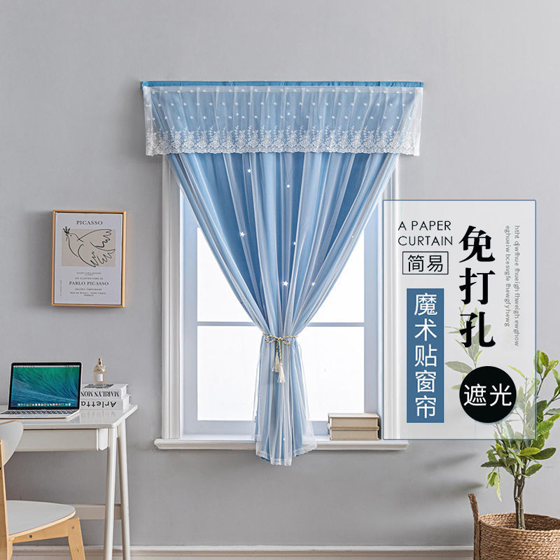 커튼은 구멍을 뚫지 않고 설치할 수 있습니다. 중공 별 공주 베이 창 붙여 넣기 커튼 벨크로 침실 인터넷 연예인 배경 차광스토어 가기
