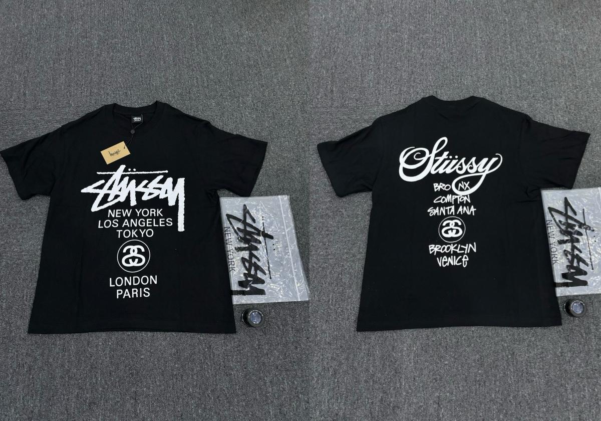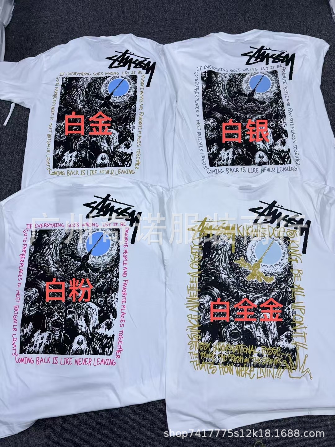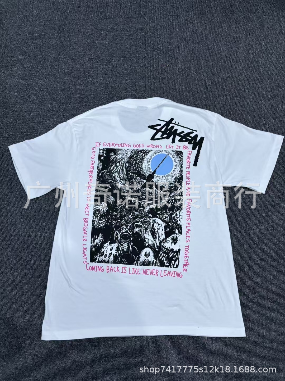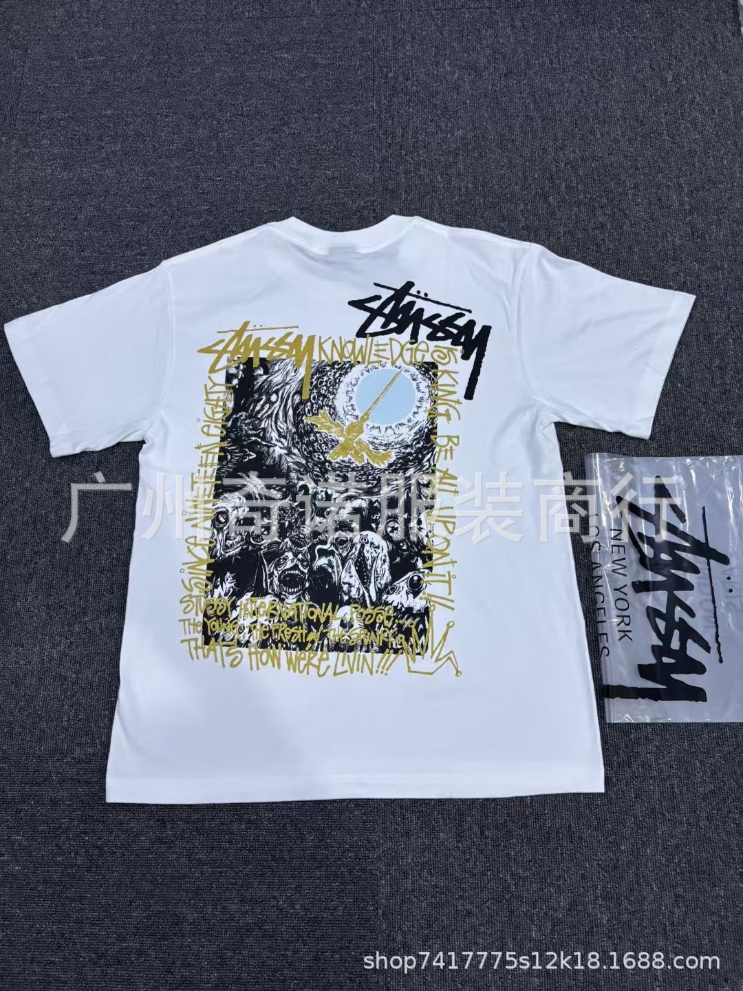 斯图西2025新款男女短袖T恤夏季男士宽松230g重磅丝网印T恤
