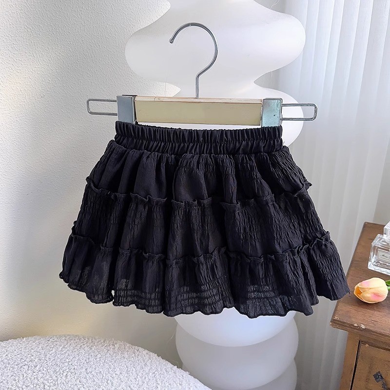 여자 스커트 2025 여름 새로운 스타일 어린이 주름 케이크 스커트 안전 바지와 공주 퍼프 스커트