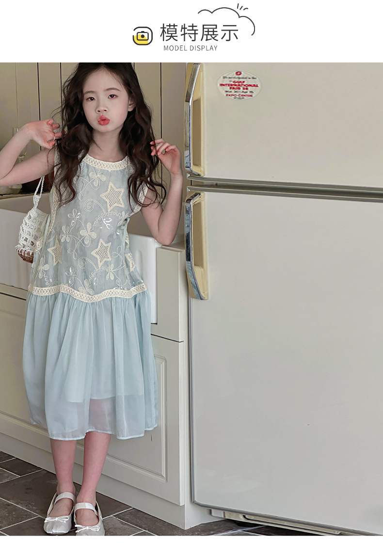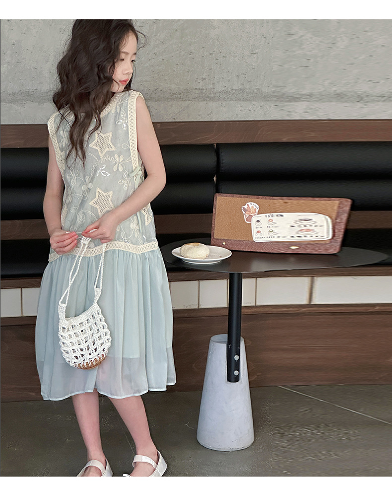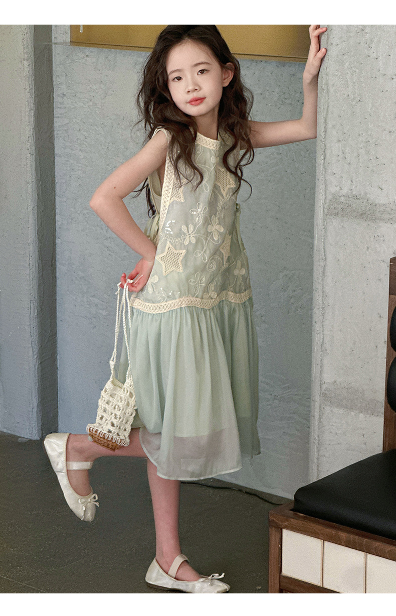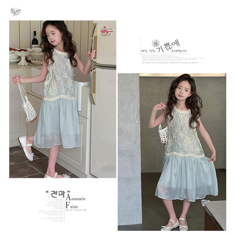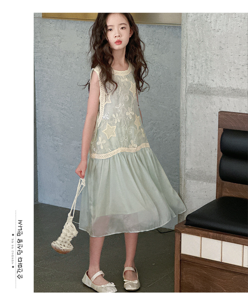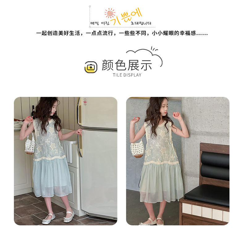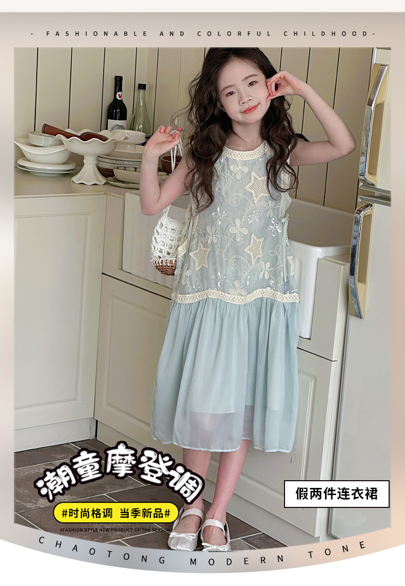 여아 민소매 원피스 여름 2026 신상 메쉬 스플라이싱 페이크 투피스 공주 드레스 중대형 아동용 가볍고 세련된 디자인