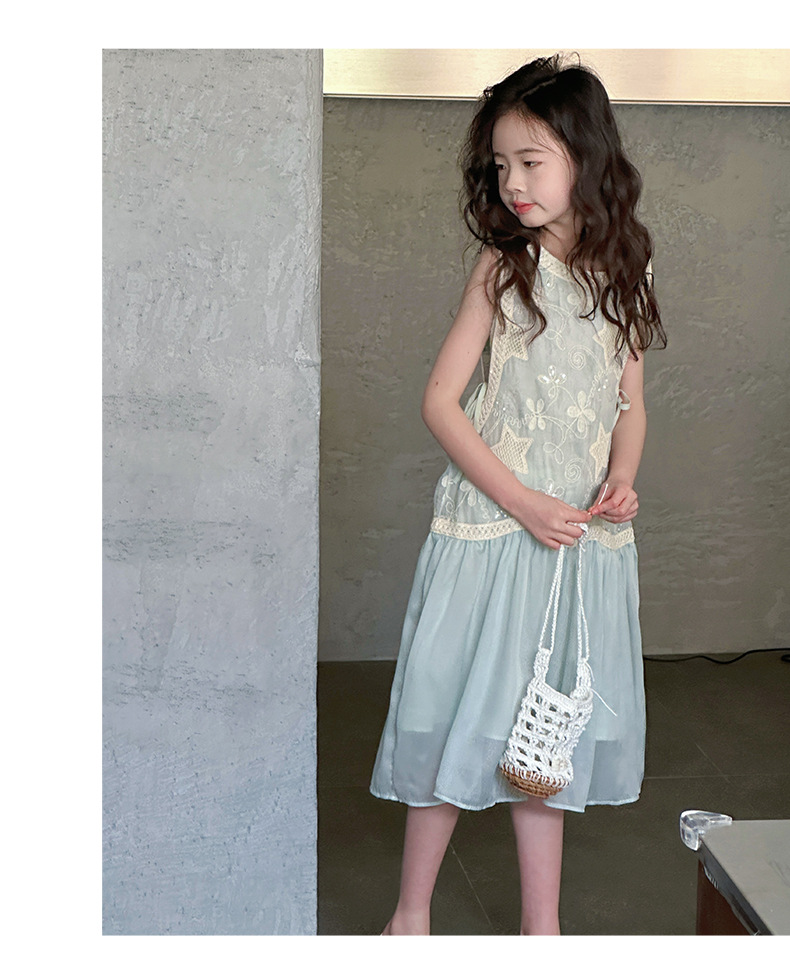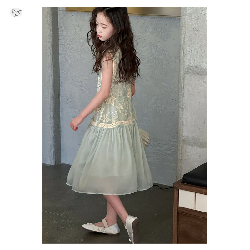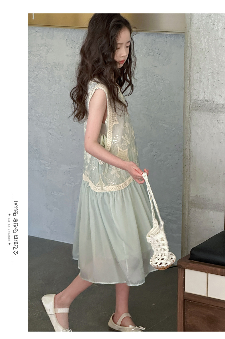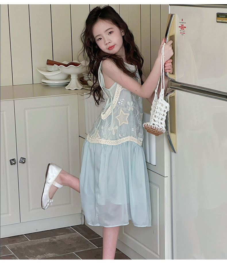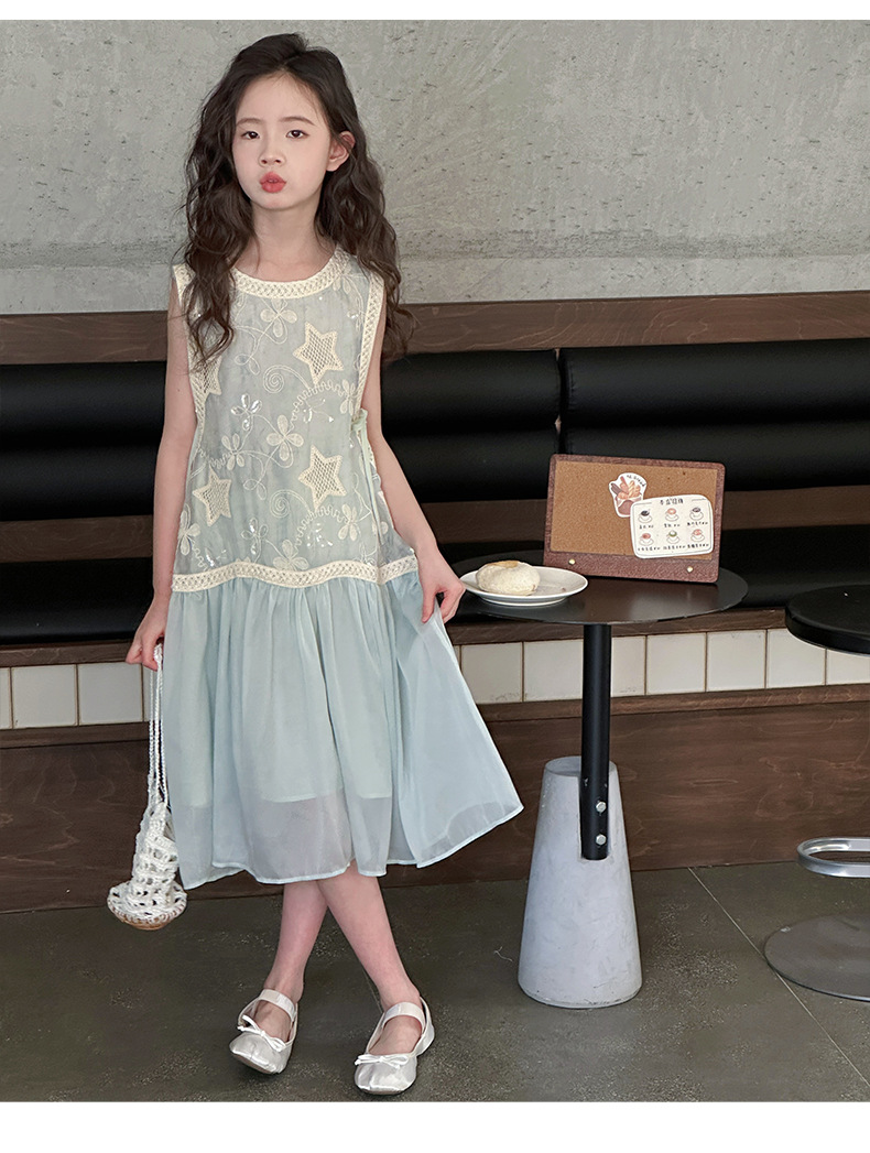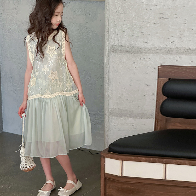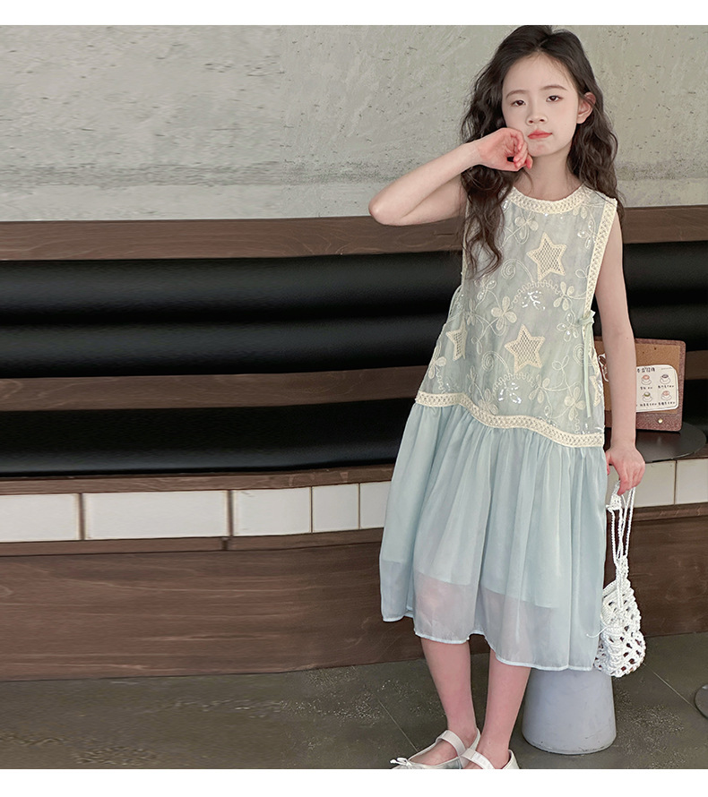 여아 민소매 원피스 여름 2026 신상 메쉬 스플라이싱 페이크 투피스 공주 드레스 중대형 아동용 가볍고 세련된 디자인