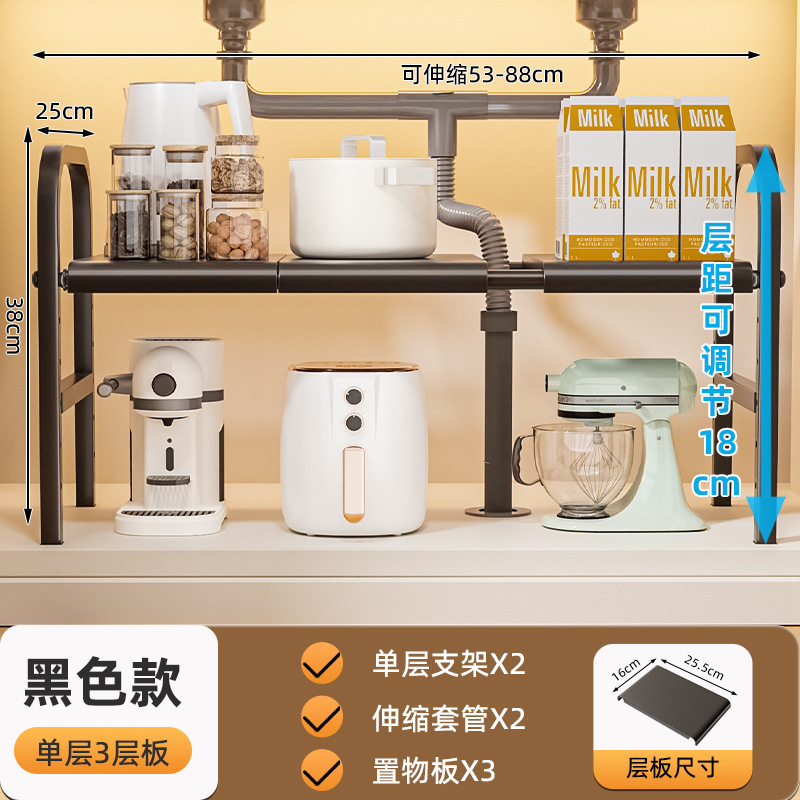 • 검정색 단층 [3단 선반 2바구니] 확장형 수납장##&()_+?