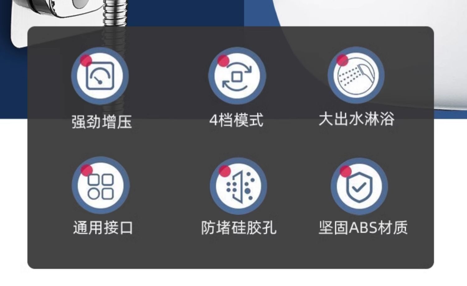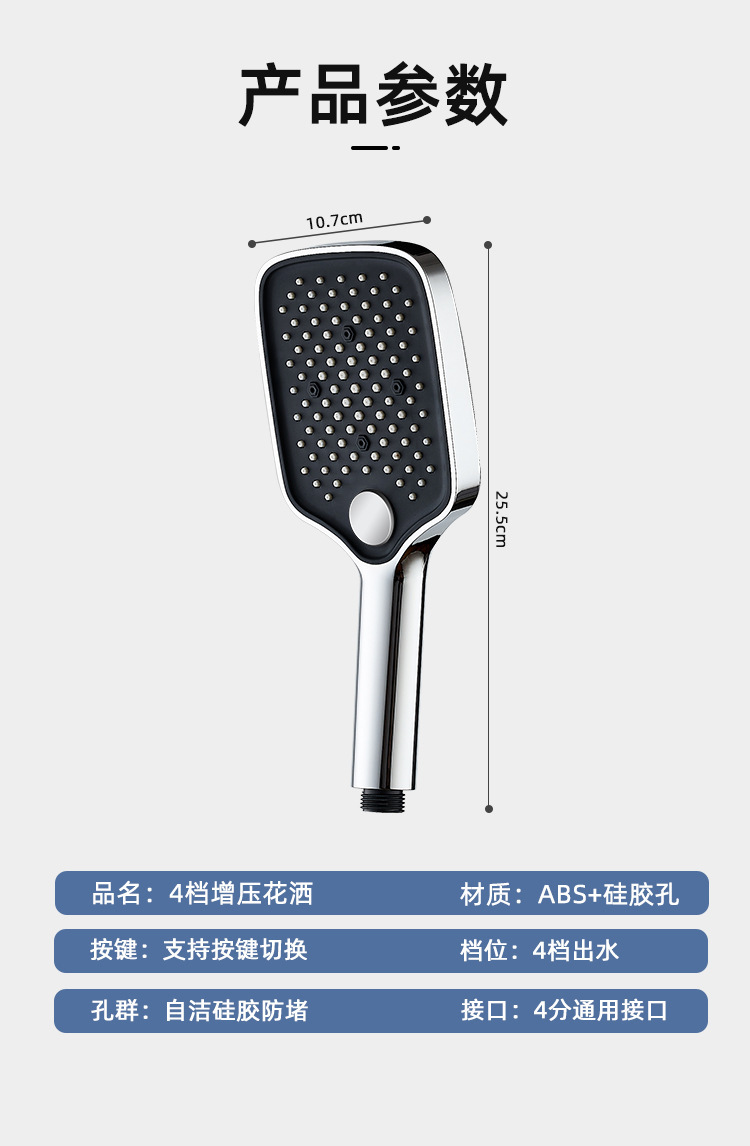 • [실버] 강력한 부스트와 대용량 배수구 ● 4단 조절식 샤워 헤드