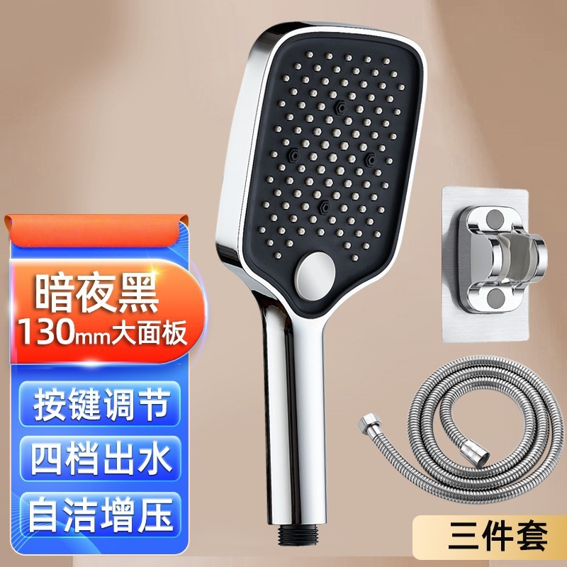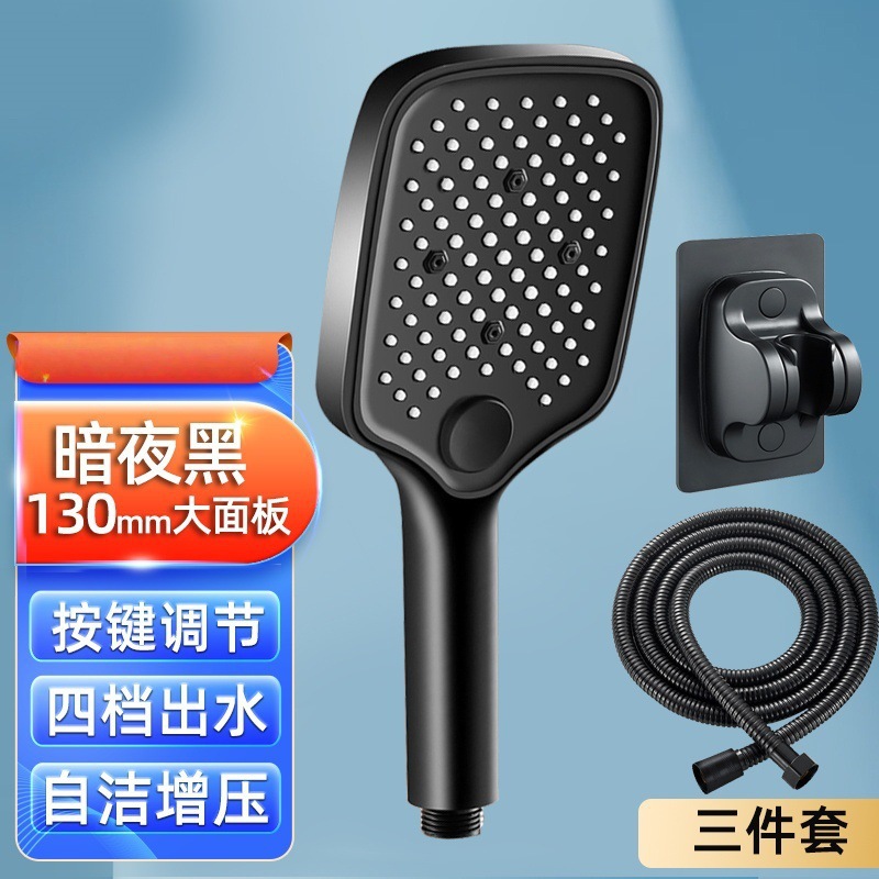 • [블랙] 강력한 가압형 4단 샤워기 + 1.5m개의 암호화된 방폭호스