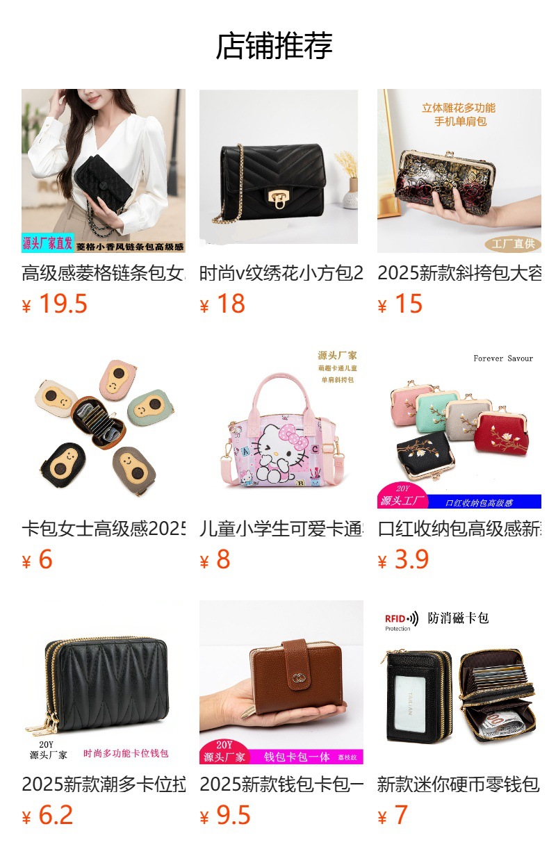 专业生产男女钱包,手机包,证件包,卡包,小斜挎包,单肩包等。支持一件代发,批量批发,OEM,ODM.如您有这方面的意向可以随时联系我们的,谢谢!!