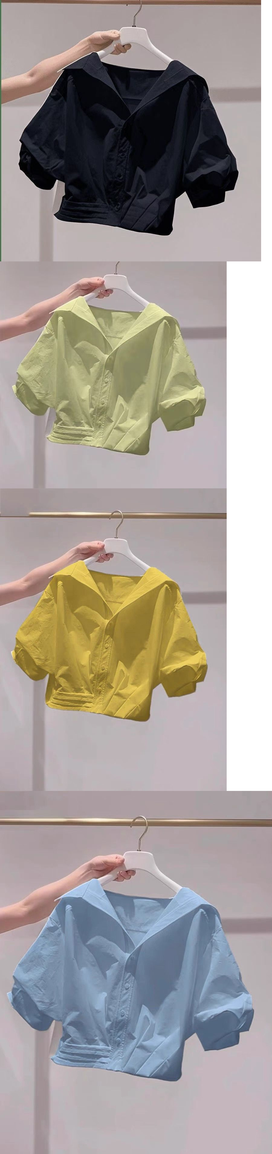 여성을위한 도파민 연령 감소 녹색 옷깃 반팔 셔츠 2025 여름 새로운 스타일 작은 달콤한 짧은 셔츠스토어 가기