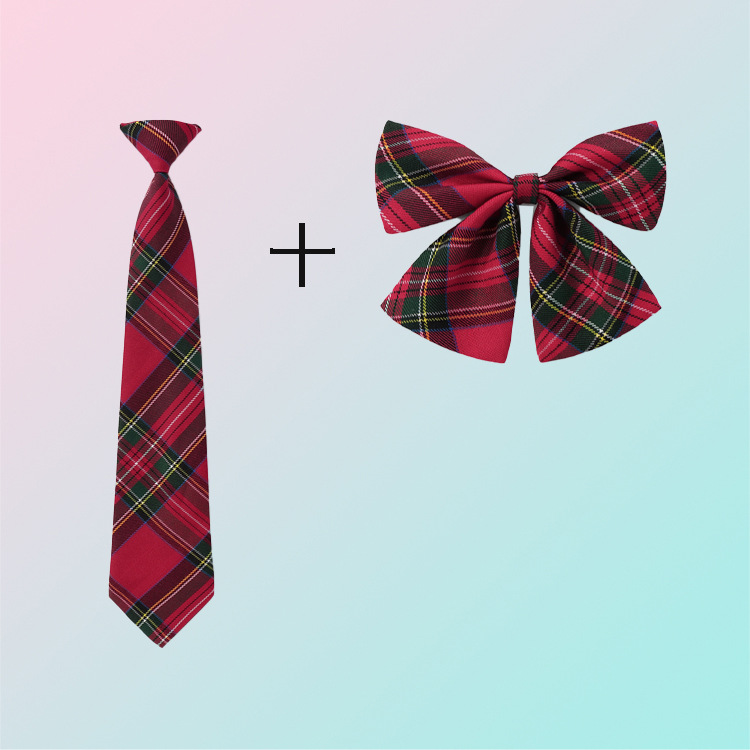• 나비넥타이 + 넥타이 (밝은 빨간색 체크무늬)