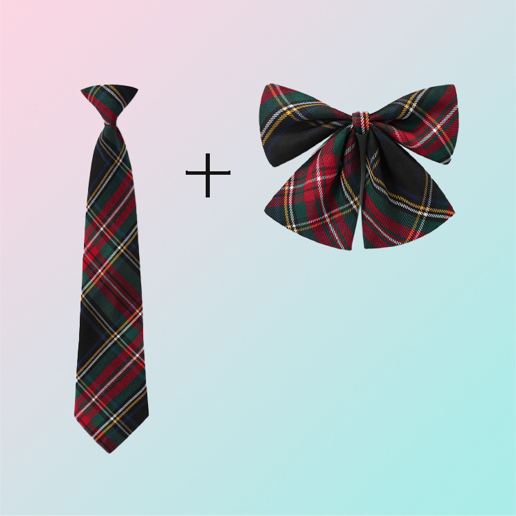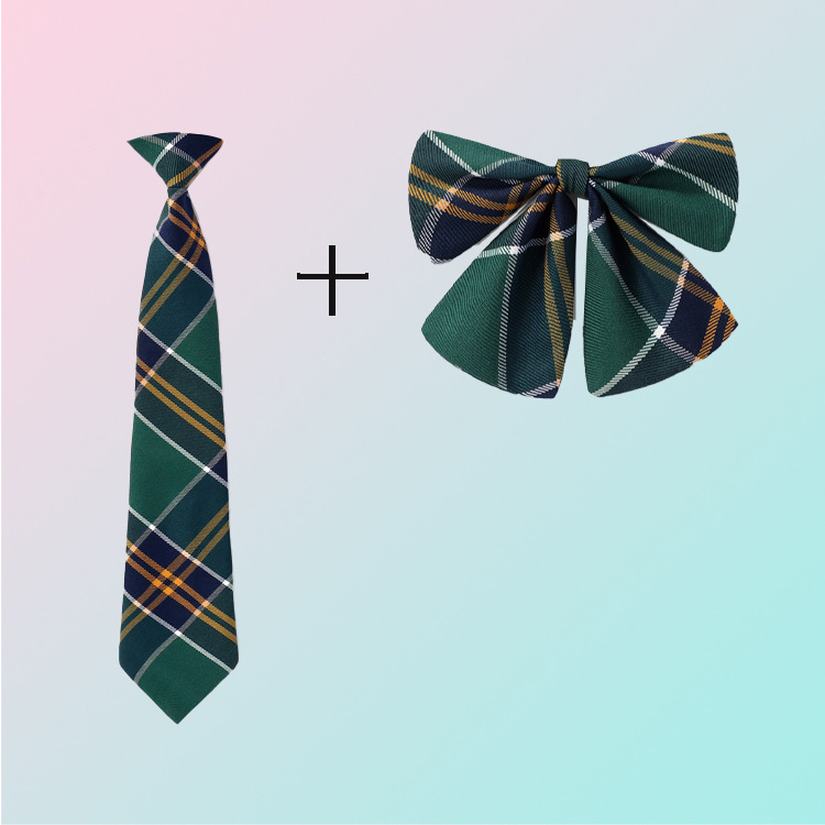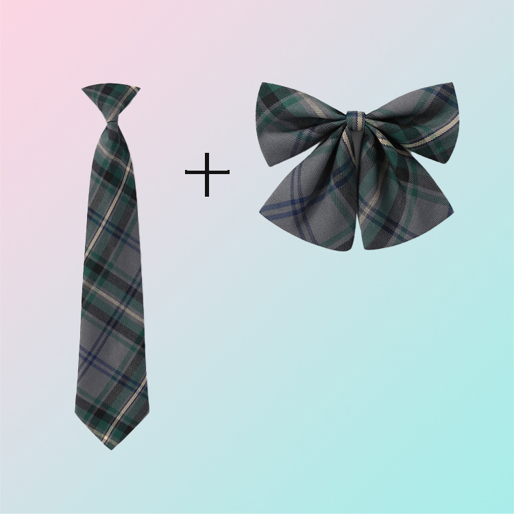 • 나비넥타이 + 넥타이 (짙은 녹색 체크무늬)