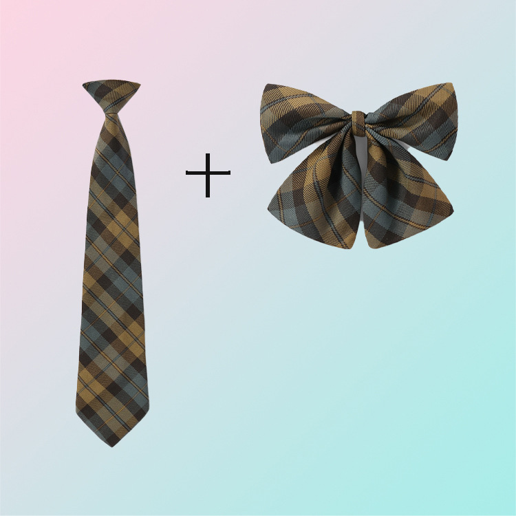 • 나비넥타이+넥타이(갈색 체크무늬)