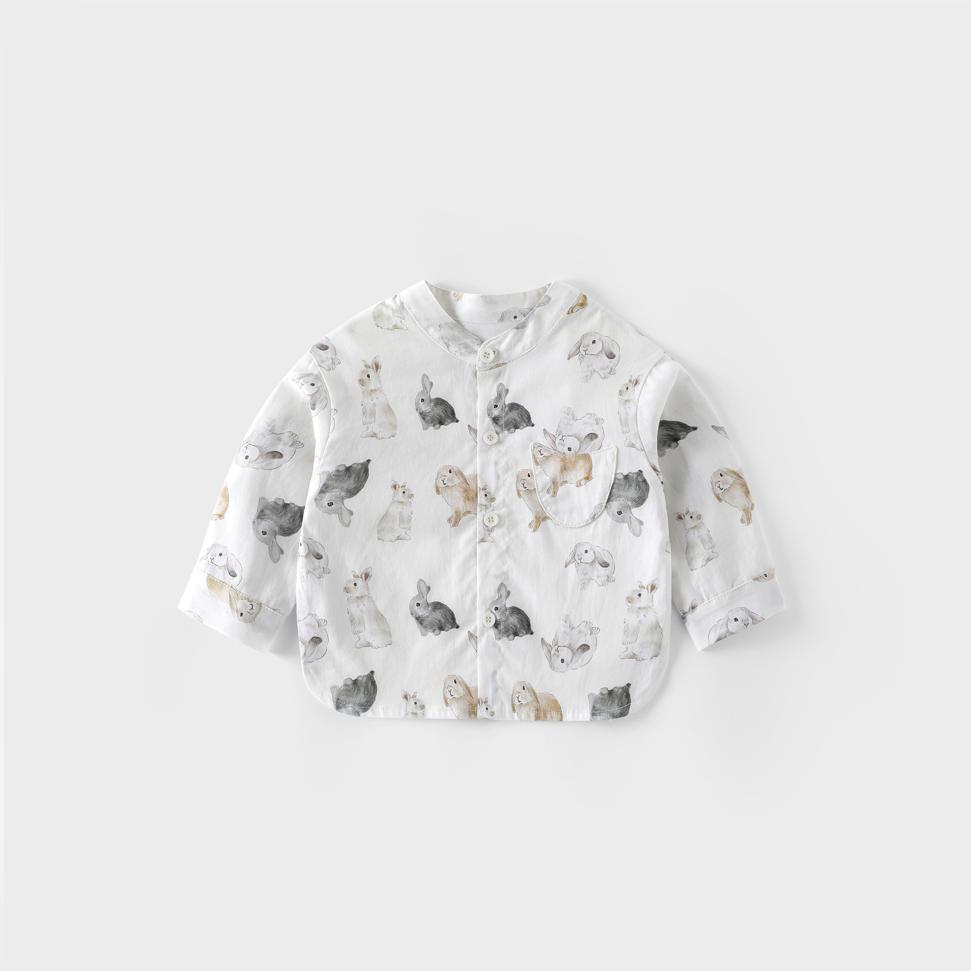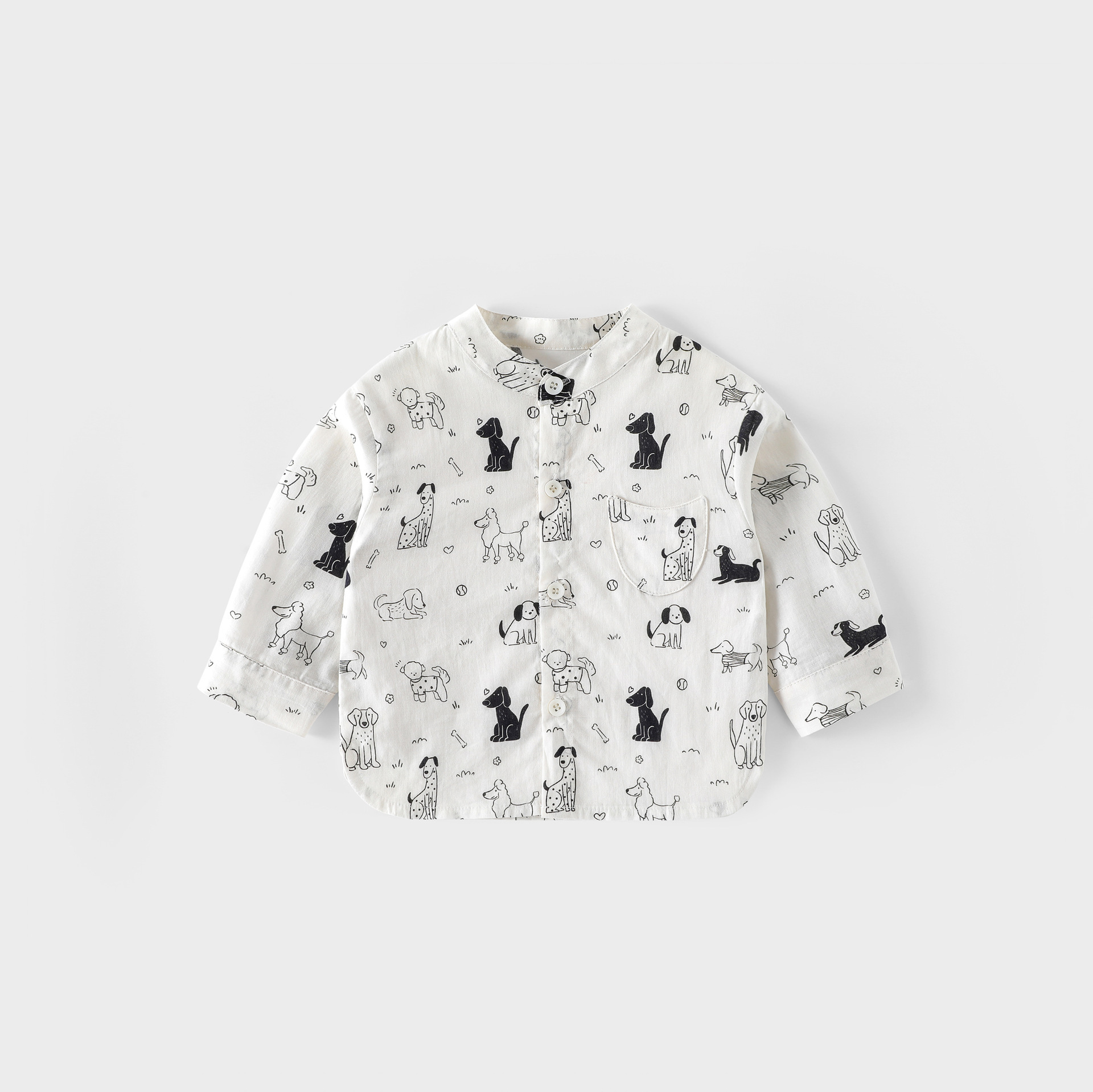 어린이 만화 셔츠 2025 새로운 가을 소년 전체 인쇄 강아지 셔츠 아기 유행 가을 탑