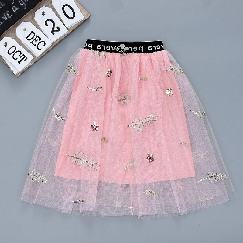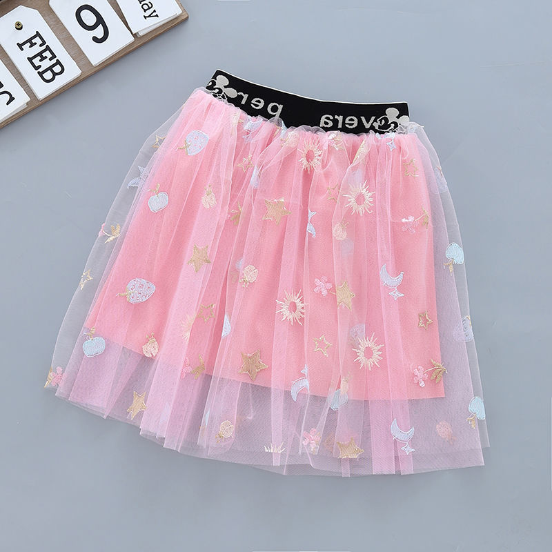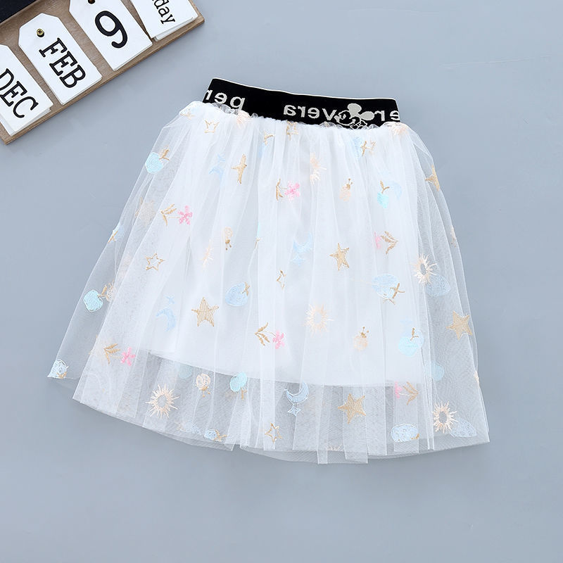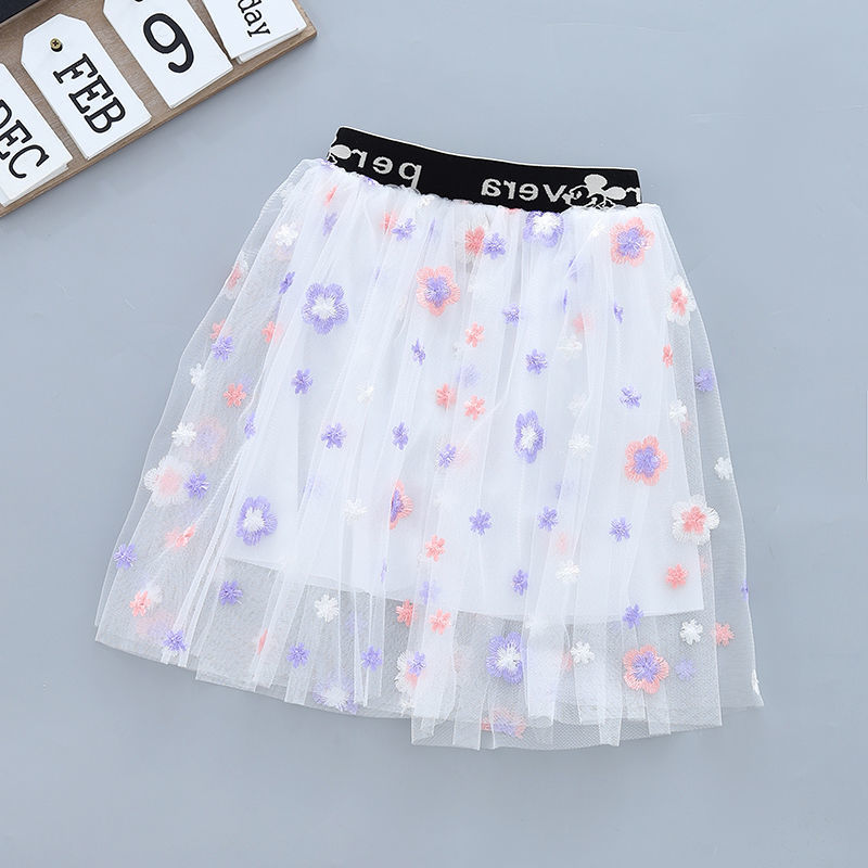 여아 스커트, 짧은 스커트, 자수 메쉬, 중대형 아동 스커트, 여름 신작, 다용도 스커트, 공주 투투 스커트