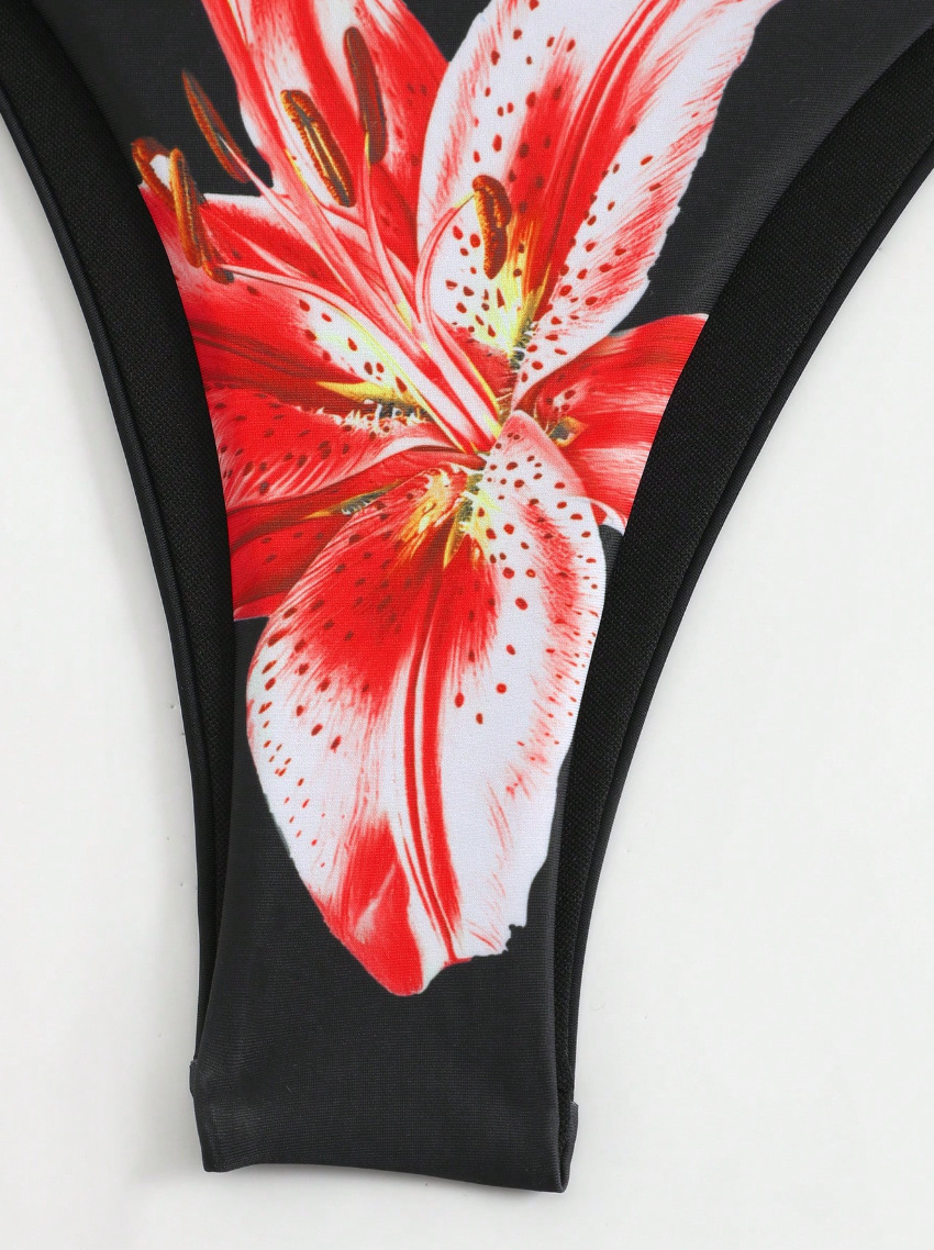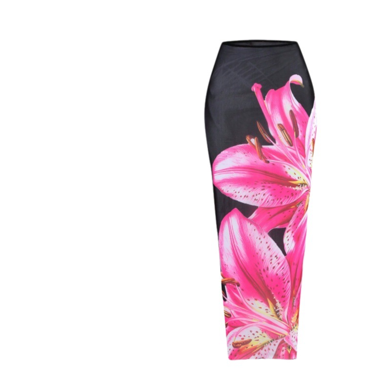 2025 새로운 크로스보더 유럽과 미국 스플릿 수영복 여성 프린트 비키니 슬림 랩 스커트 3피스 비치 수영복