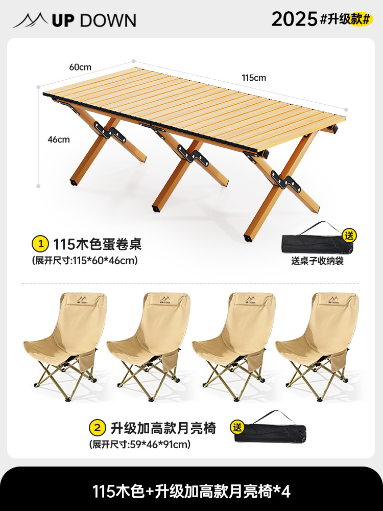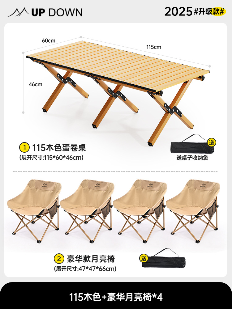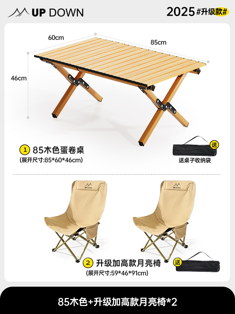 Updown 캠핑 테이블과 의자 계란말이 테이블 야외 접이식 테이블 휴대용 피크닉 세트 캠핑 피크닉 장비 세트
