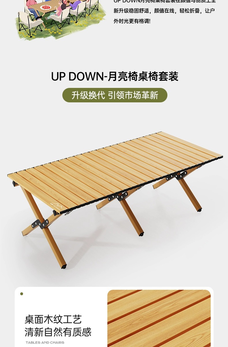 Updown 캠핑 테이블과 의자 계란말이 테이블 야외 접이식 테이블 휴대용 피크닉 세트 캠핑 피크닉 장비 세트스토어 가기