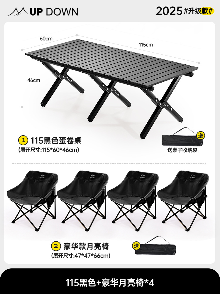 • 가족이 편안하게 여행할 수 있는 블랙 스타일 [테이블 115개 + 업그레이드된 높이의 달 의자*4]