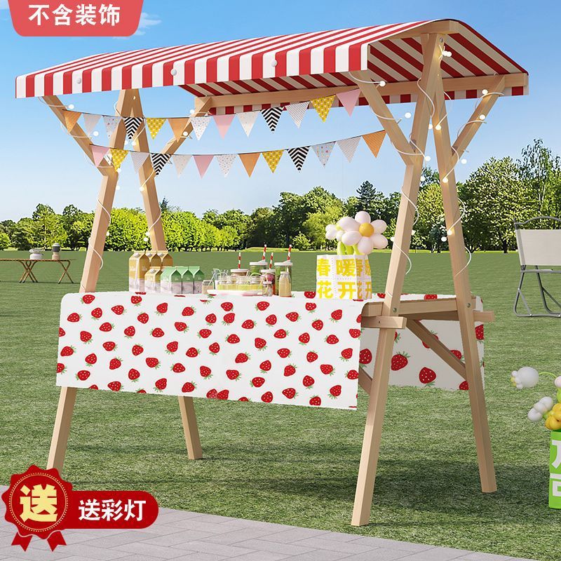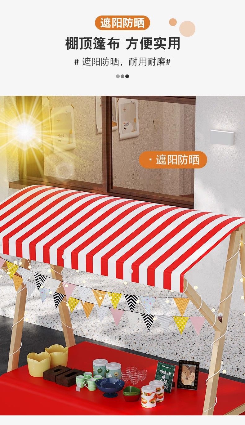 • 150*60*200+바퀴-빨간색과 흰색 타포린+작은 딸기 식탁보, 무료 랜턴
