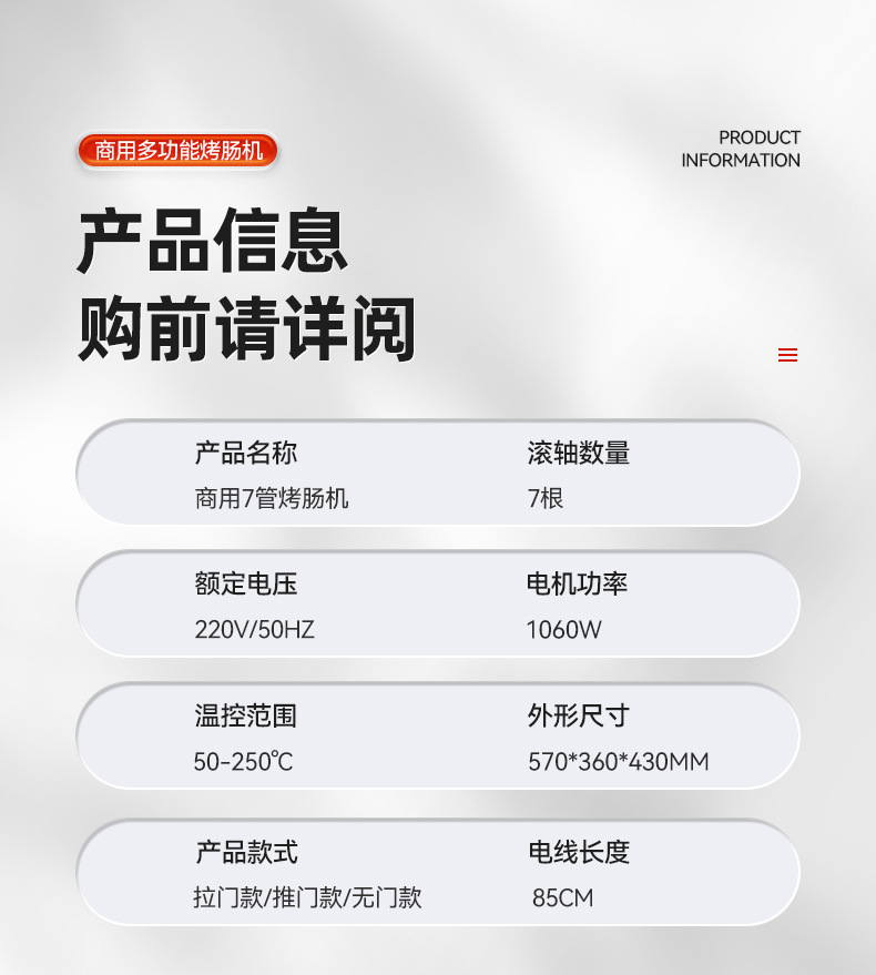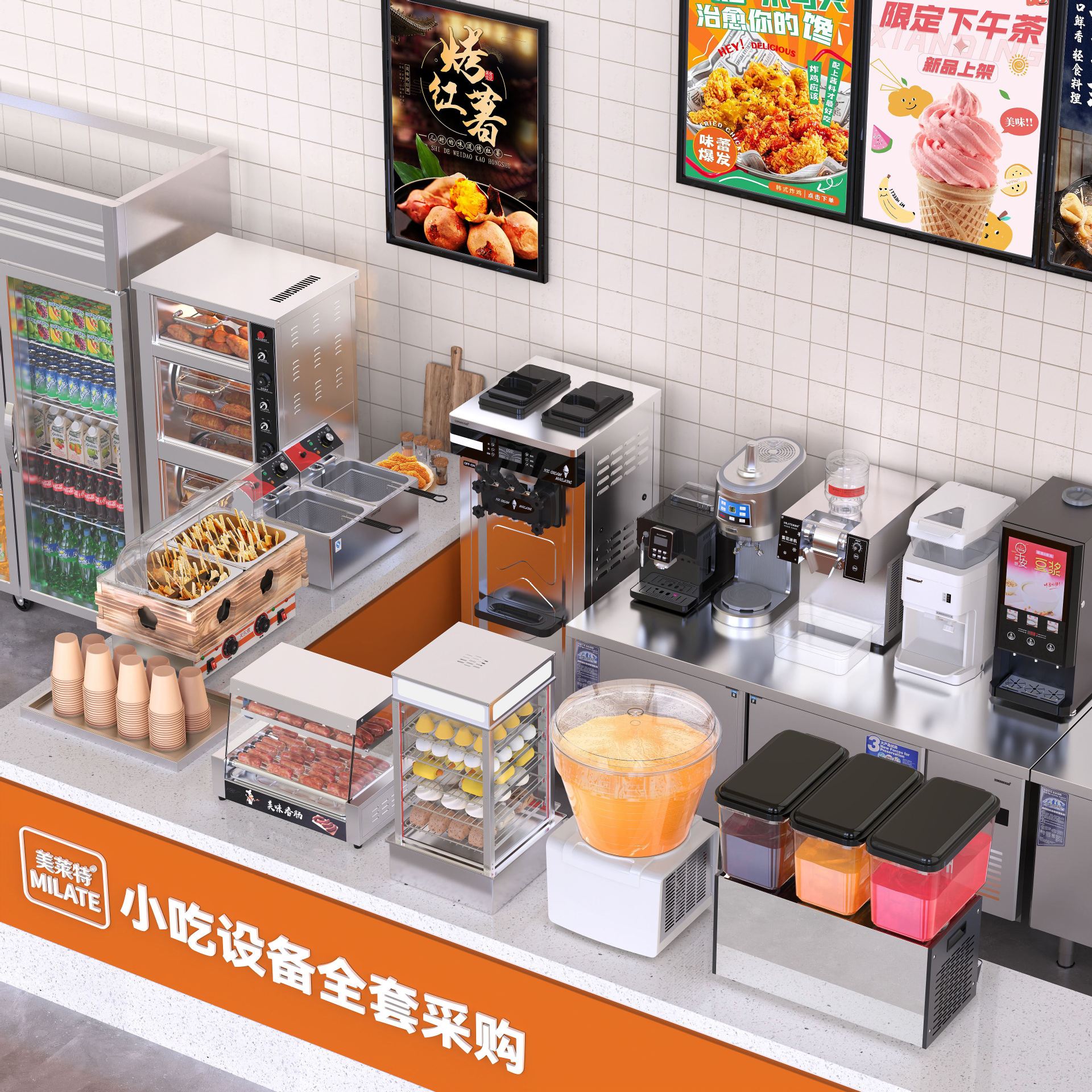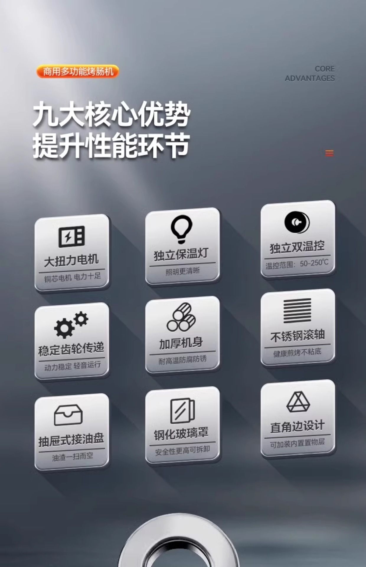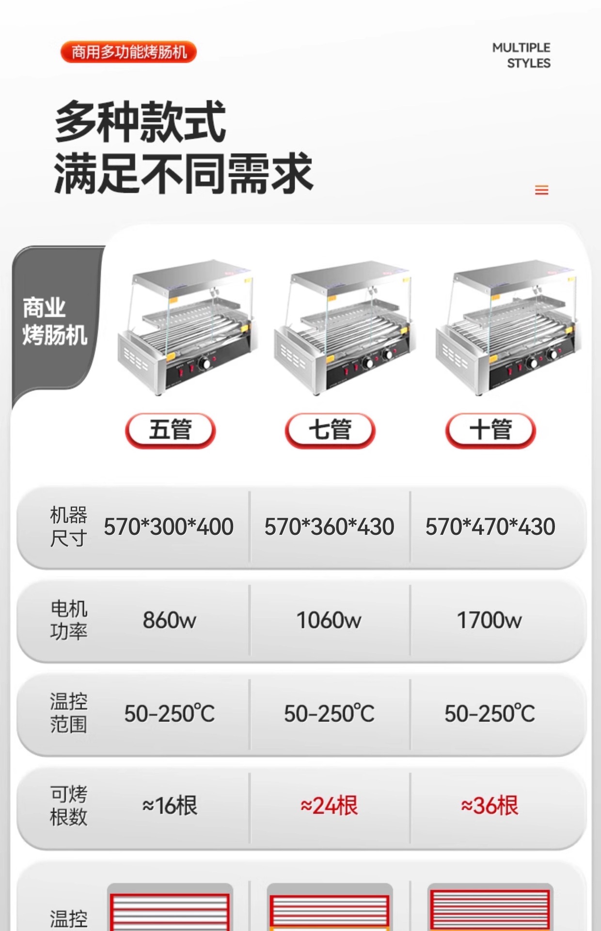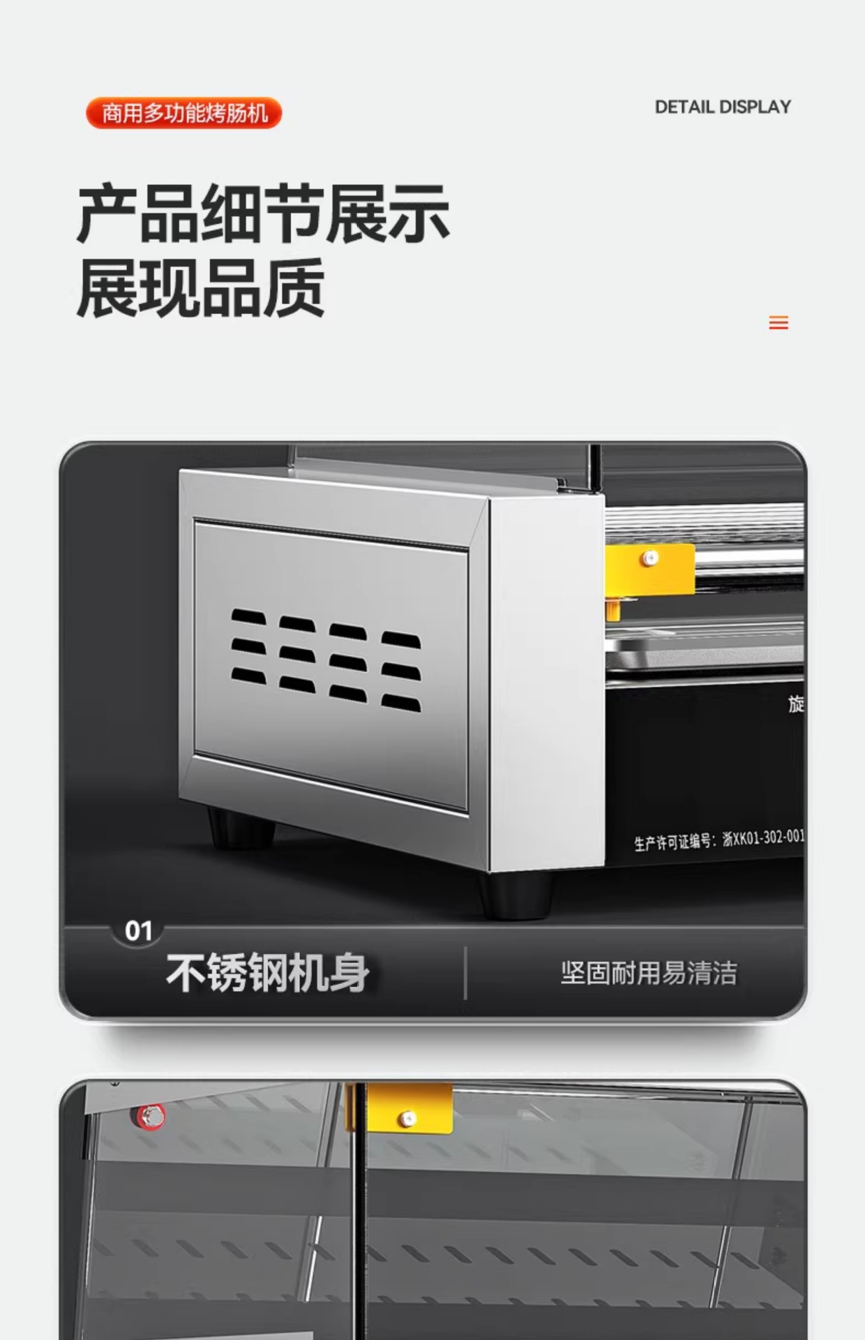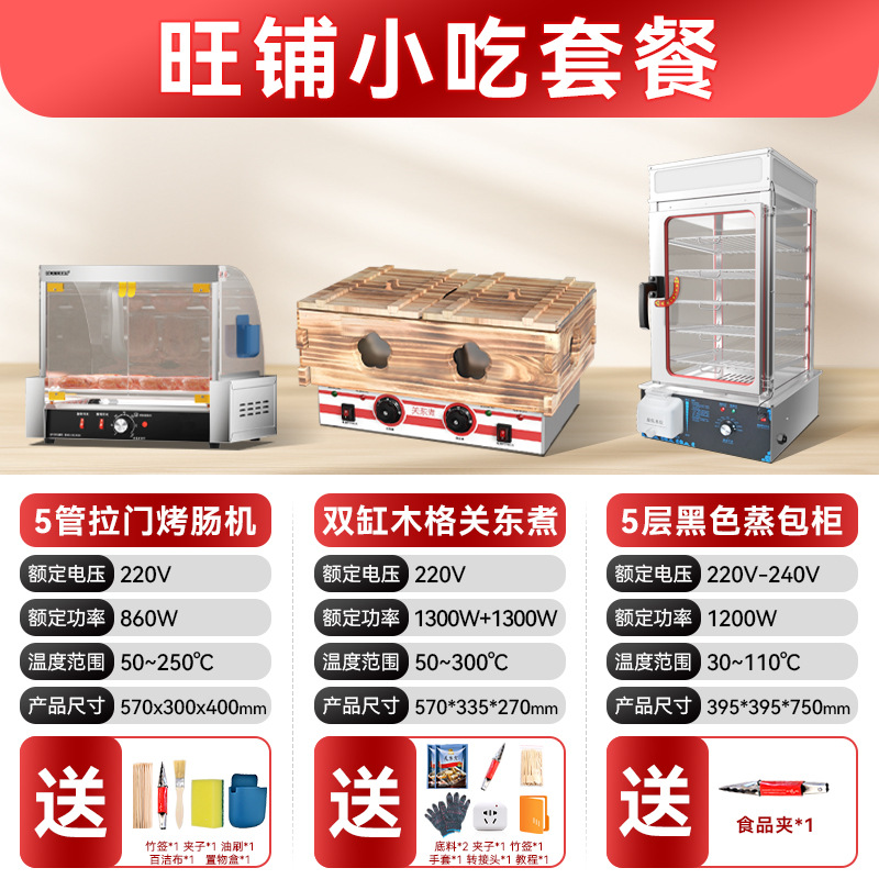 • 왕푸 스낵 장비 [5관 미닫이 소시지 굽는 기계 + 이중 실린더 나무 격자 오뎅 + 5단 찐빵 캐비닛]