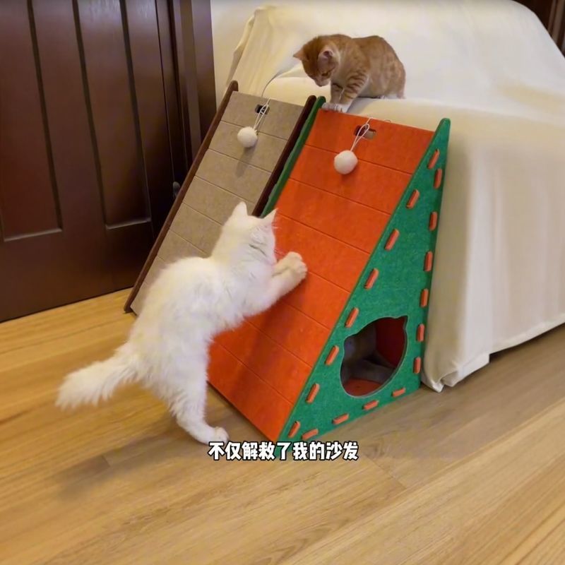 • 오렌지색 [삼각형 고양이 긁는 기둥]은 칩을 흘리지 않고 잠과 놀이를 결합합니다.
