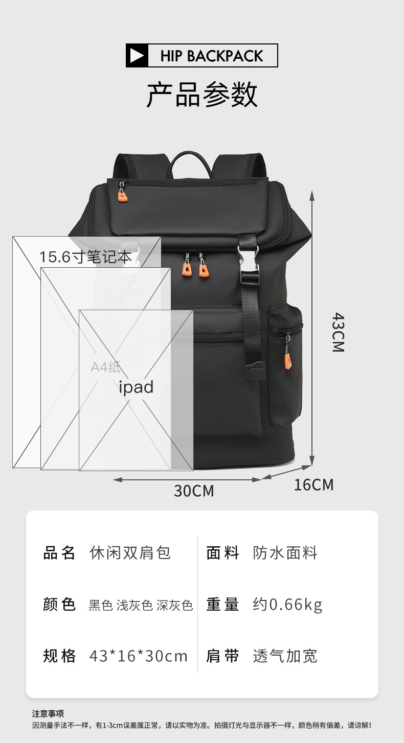 새로운 남성 대용량 여행 배낭 비즈니스 컴퓨터 휴대용 패션 트렌드 야외 레저 솔리드 컬러 배낭