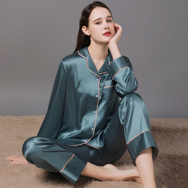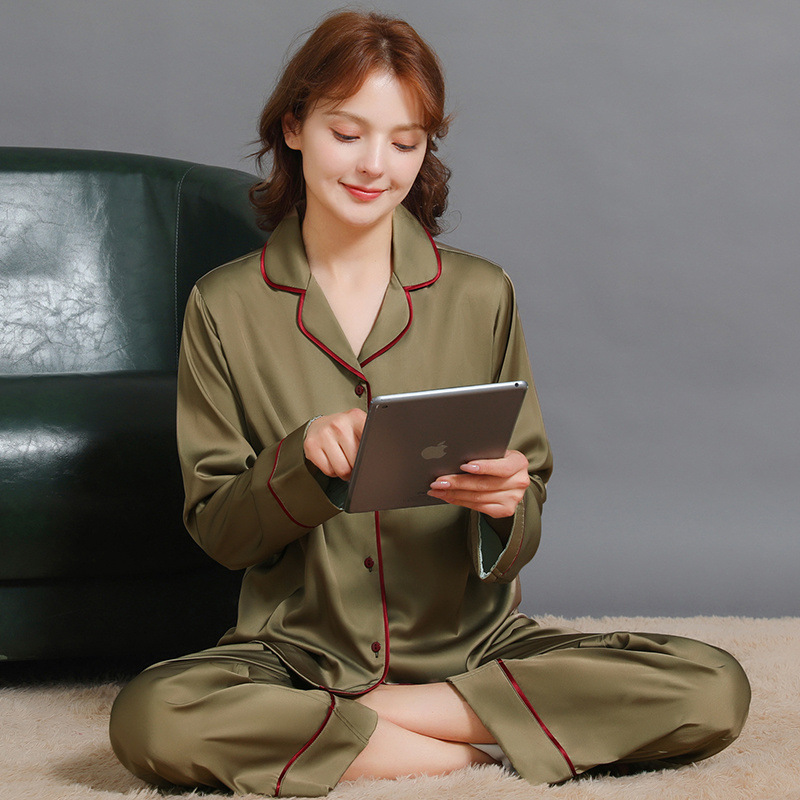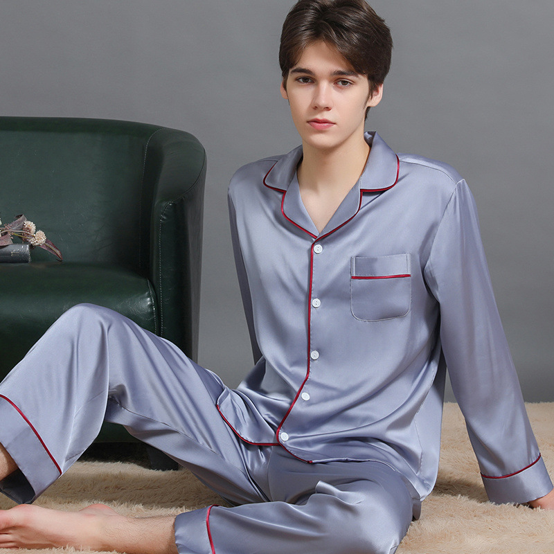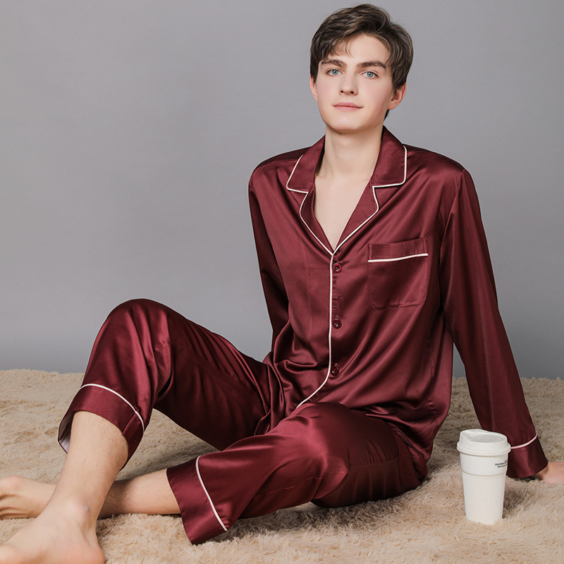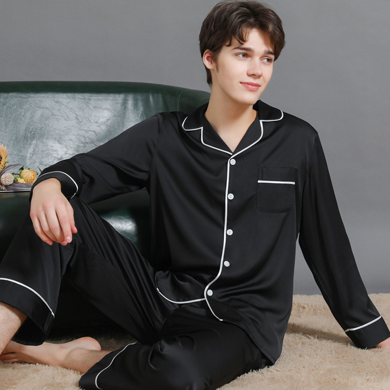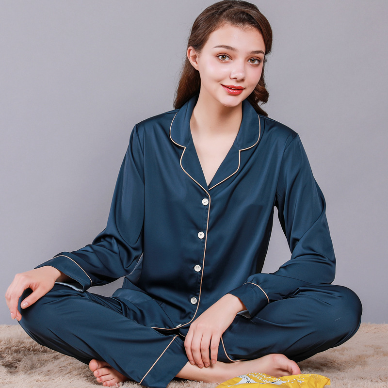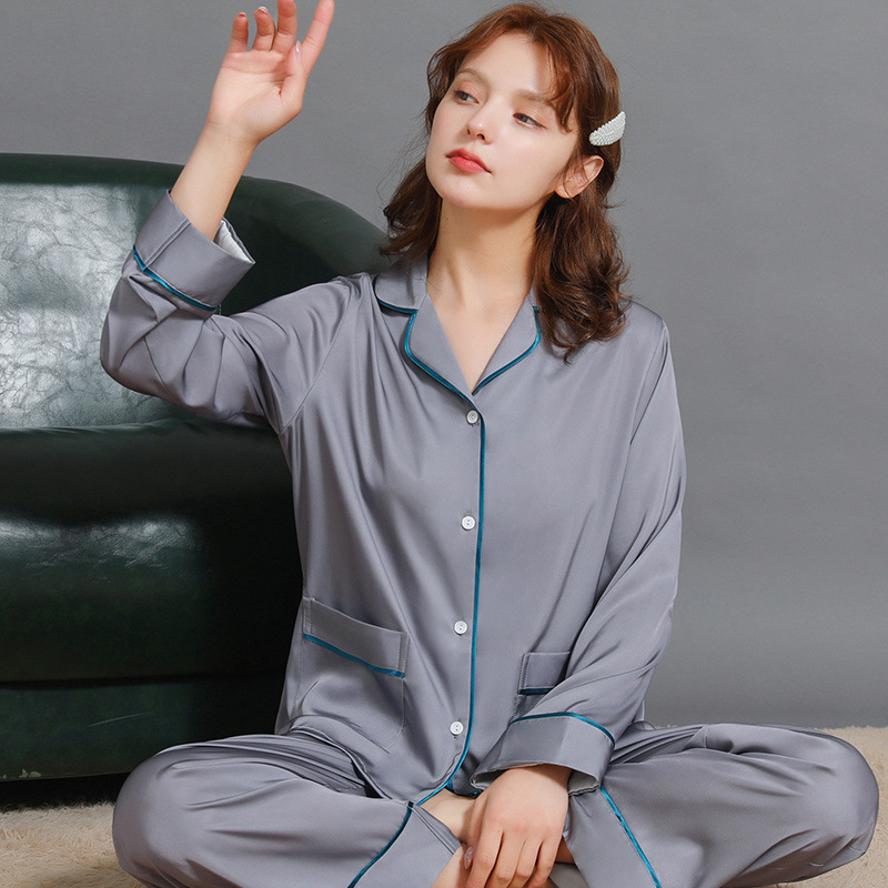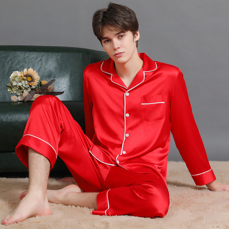 남성과 여성을위한 플러스 사이즈 실크 잠옷 봄과 여름 얇은 봄 실크 커플 홈웨어 긴팔 선물 상자스토어 가기