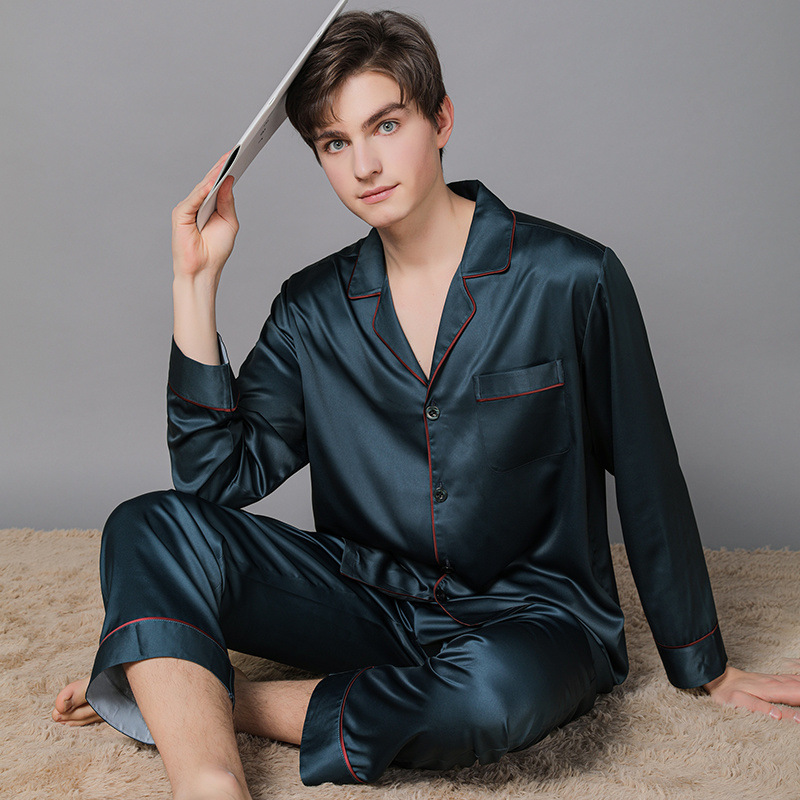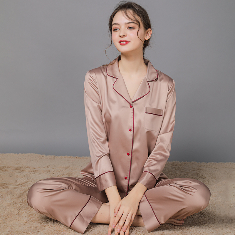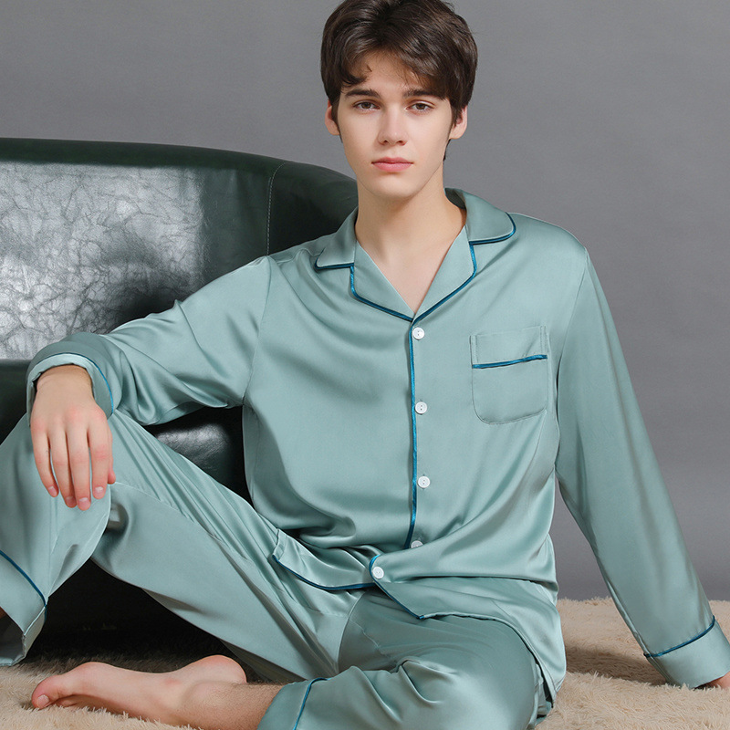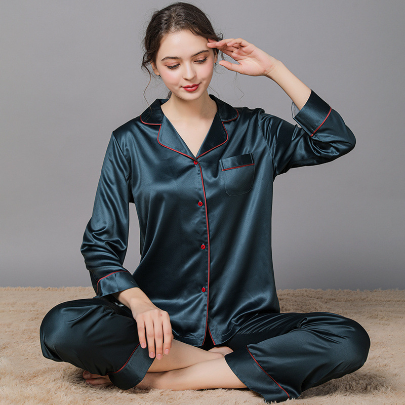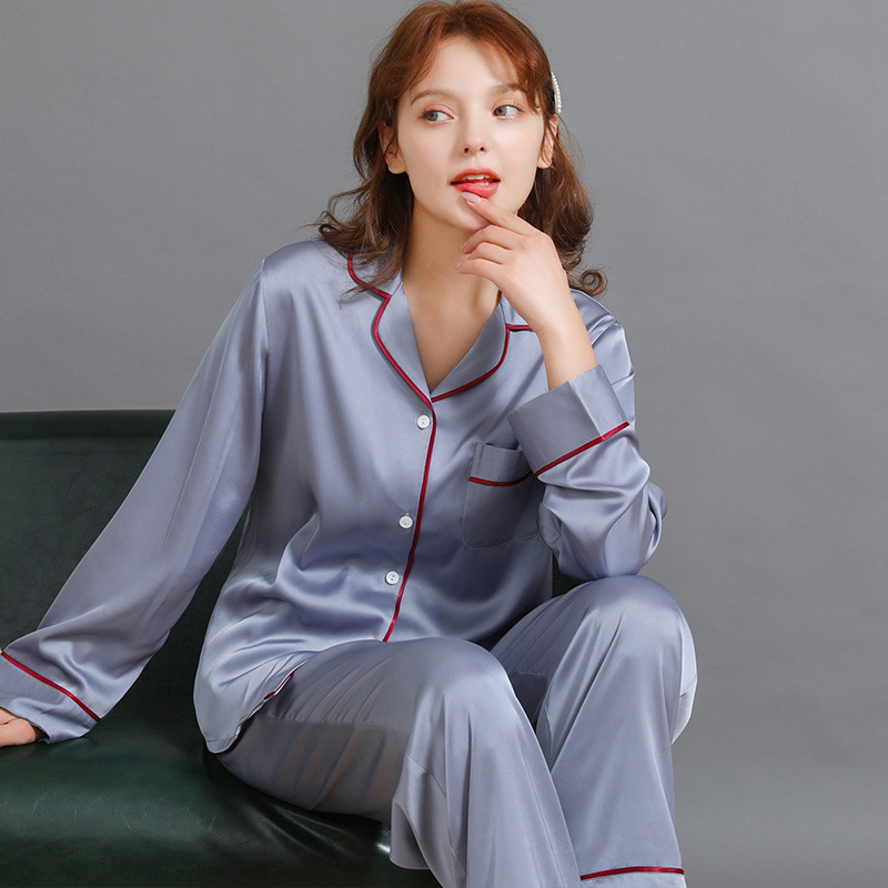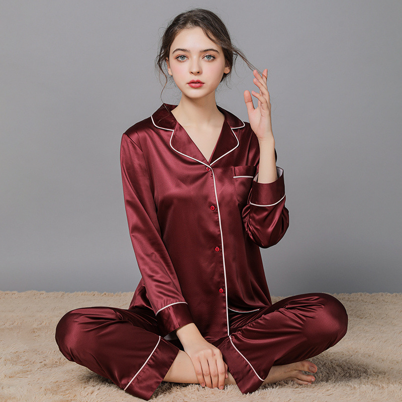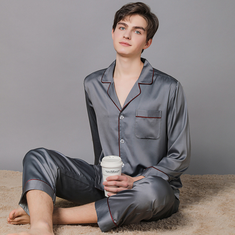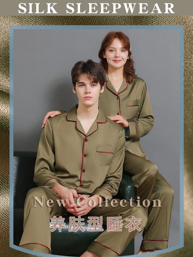 남성과 여성을위한 플러스 사이즈 실크 잠옷 봄과 여름 얇은 봄 실크 커플 홈웨어 긴팔 선물 상자스토어 가기