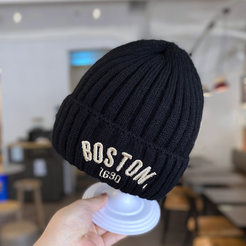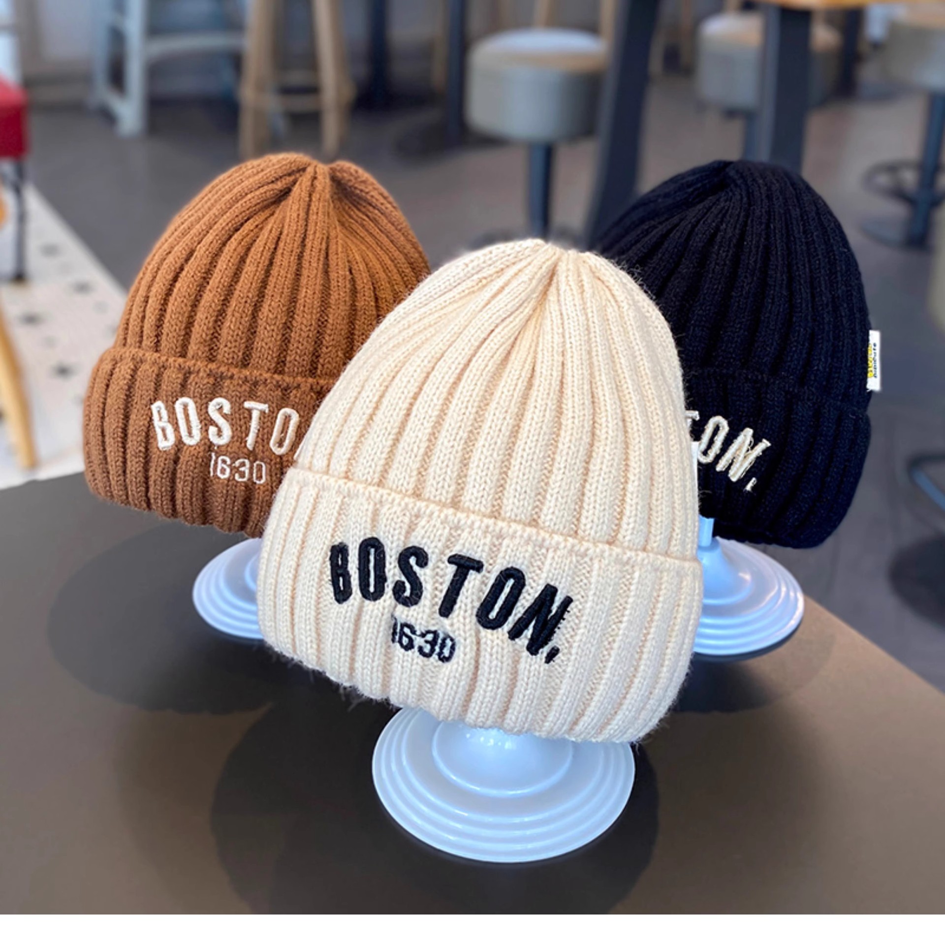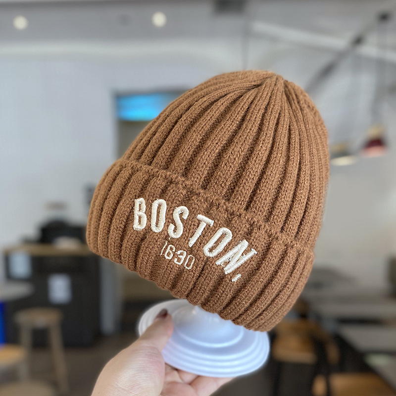 어린이 가을, 겨울 한국어 버전 ins 문자 소년과 소녀 니트 모직 모자 겨울 따뜻한 아기 풀오버 모자 유행스토어 가기
