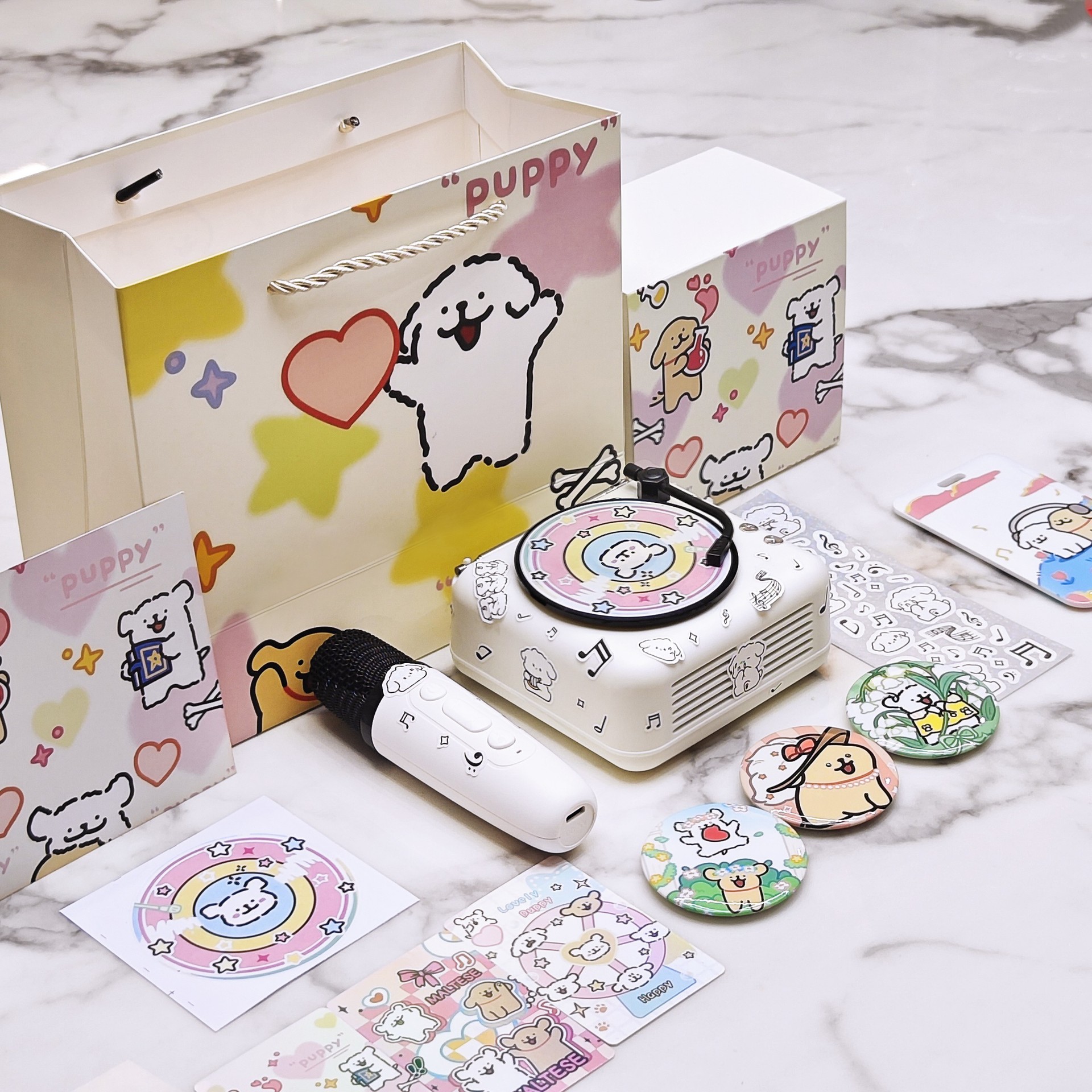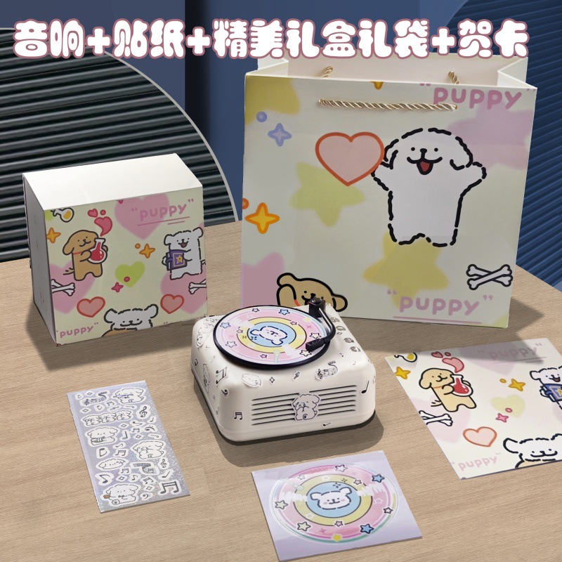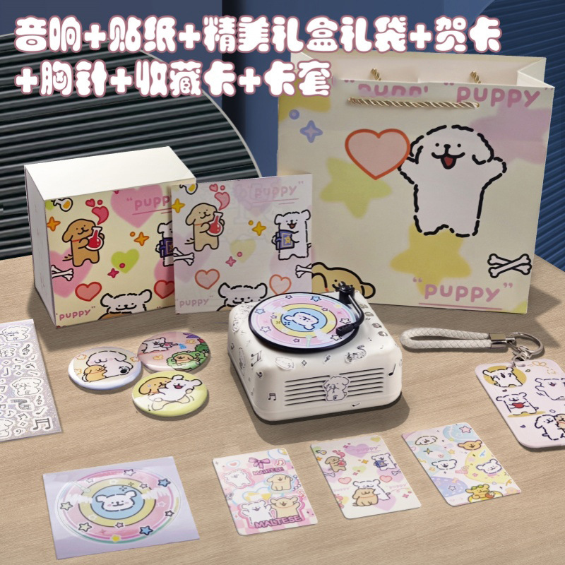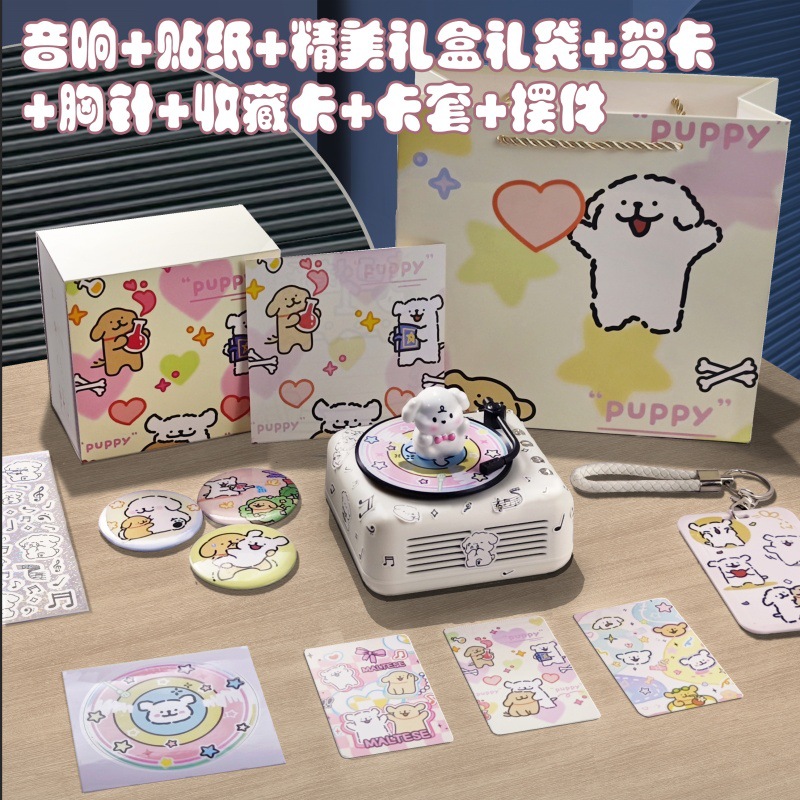 • 럭셔리 모델) 귀여운 강아지 스피커 + 스티커*2 + 선물 상자 + 선물 가방 + 귀여운 강아지 주변기기